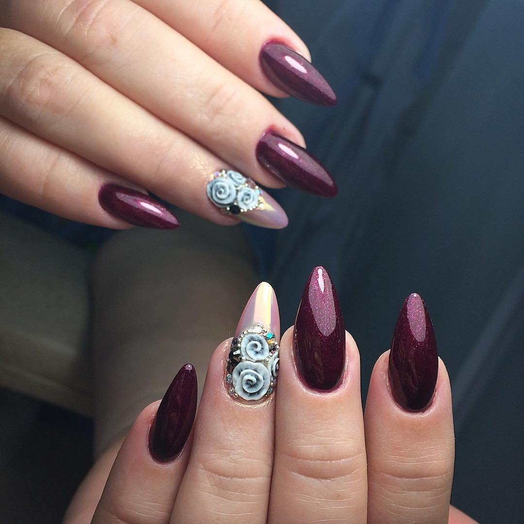 Объемные рисунки на острых ногтях