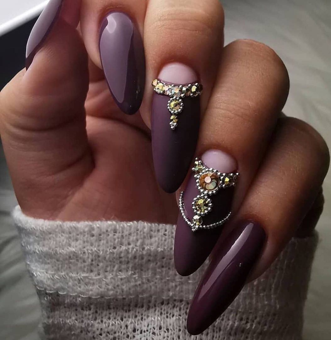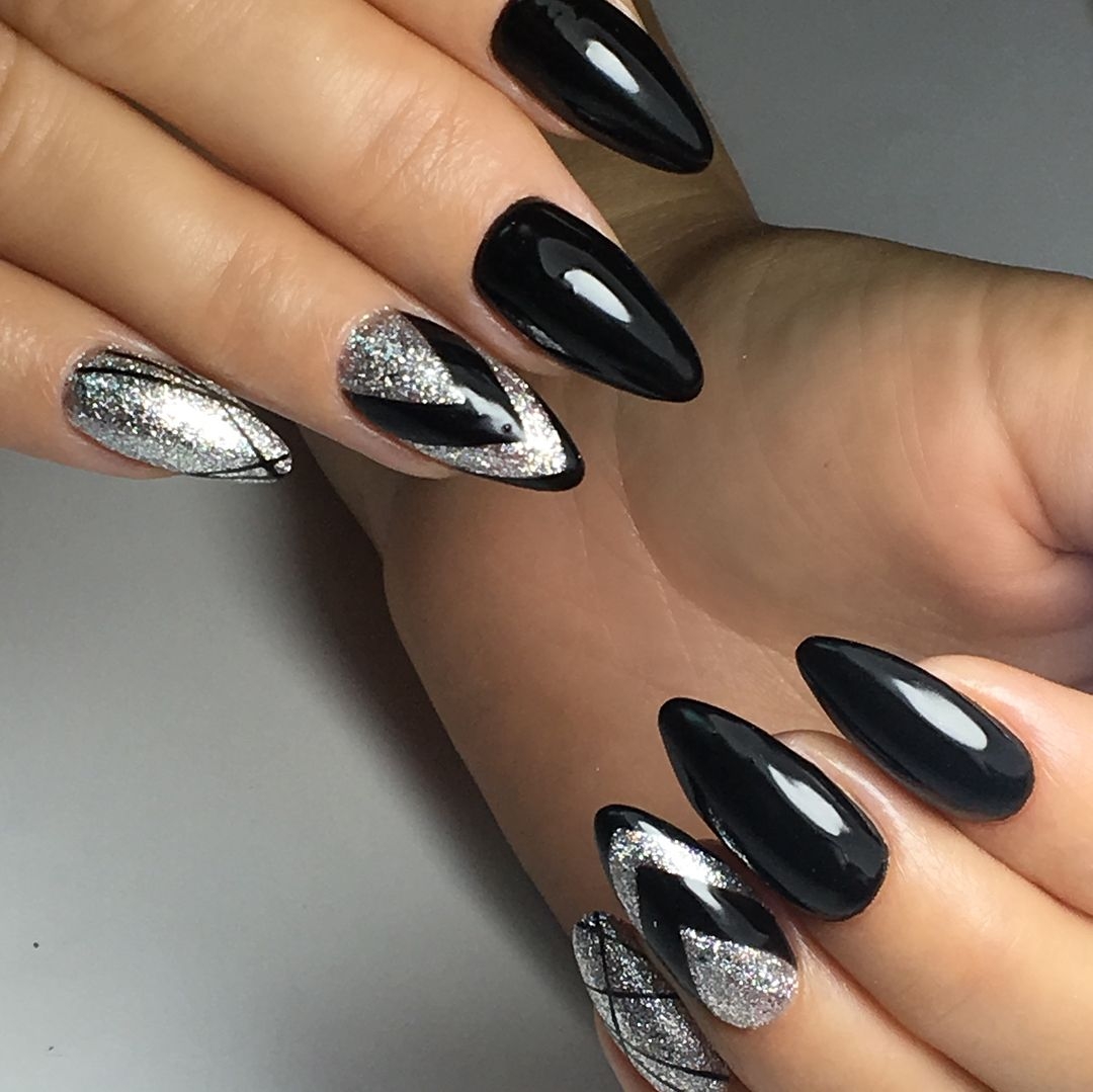 ТЕМНЫЙ МАНИКЮР НА ОСТРЫЕ НОГТИ