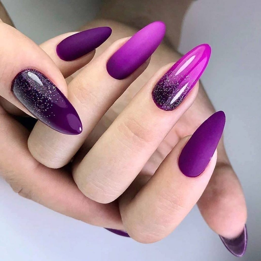 Отличным решением будет скомбинировать его с матовым топом. Маникюр можно сделать в одном тоне, или же прибегнуть к омбре и градиенту.