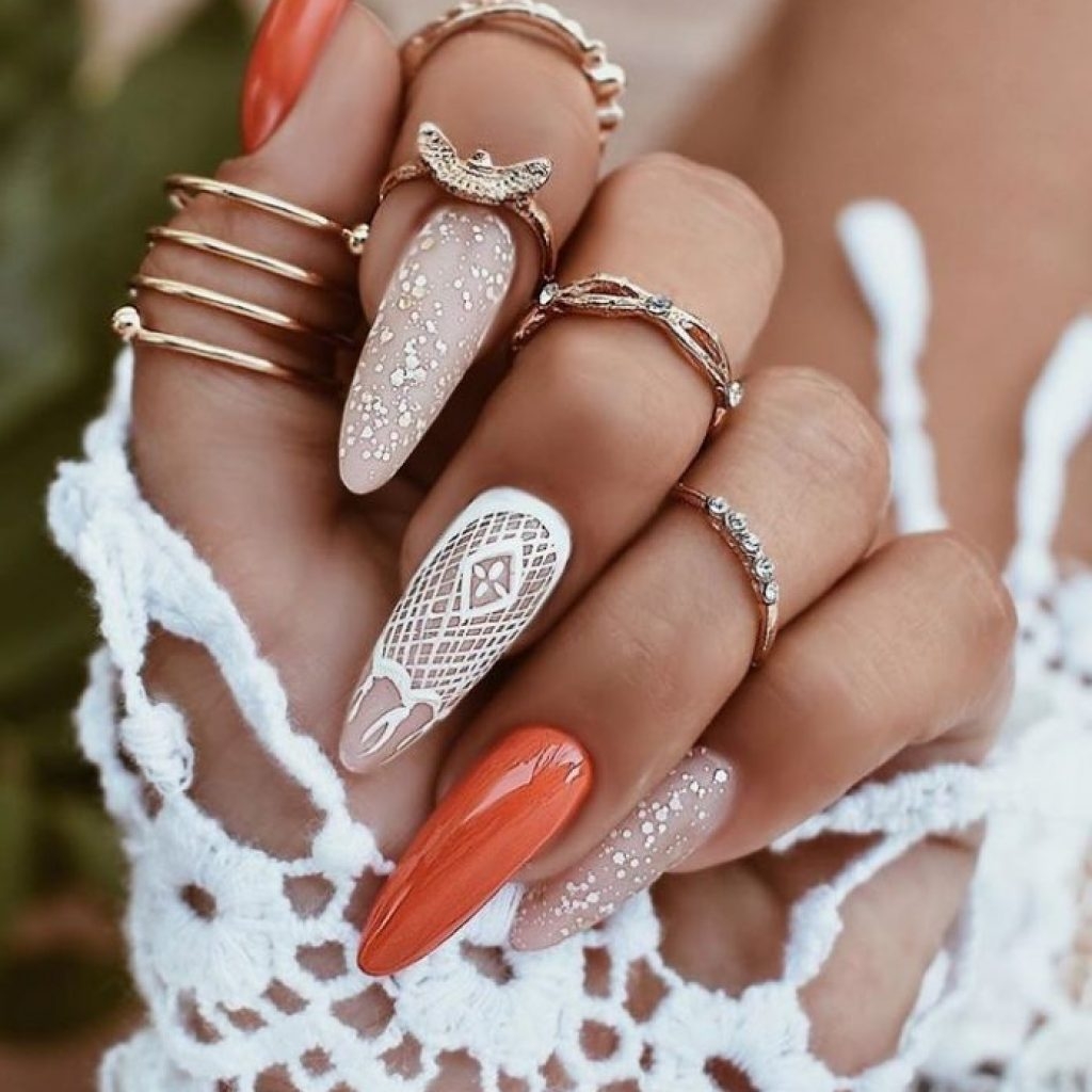 Нюдовые пастельные тона делают дизайн более лаконичным и спокойным. Немного привлекающая внимание роспись с кружевным рисунком, четкая графика, мраморный дизайн и минималистичный матовый тон будут в тренде в 2022 году
