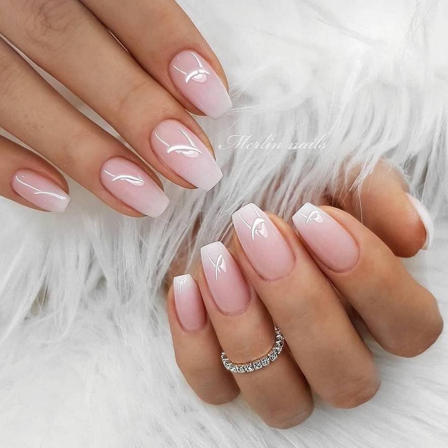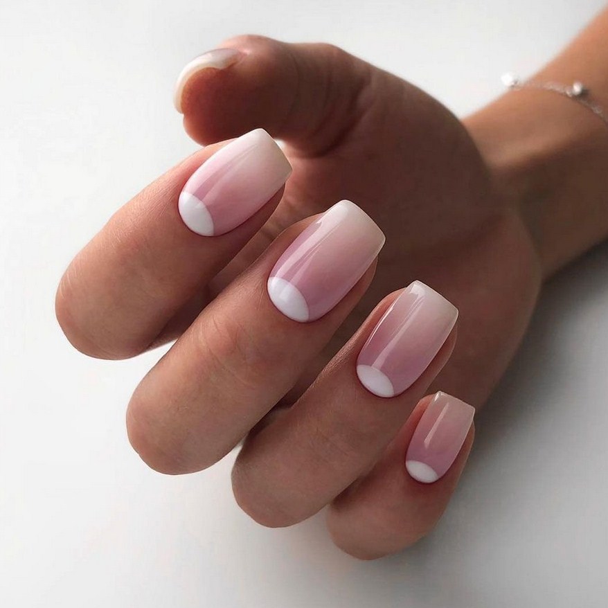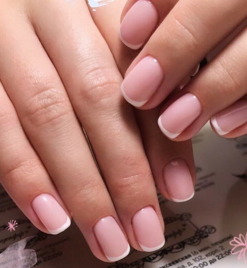В них почти не чувствуется контраста и используются мягкие цвета. Ногтевая пластина прокрашивается основой розового, бежевого тона. Лунка может быть как чёткой, так и размытой, но не сильно выделяется на основном цвете. Светлый считается универсальным для учёбы, работы, нежных оттенков в одежде, особенно летом.