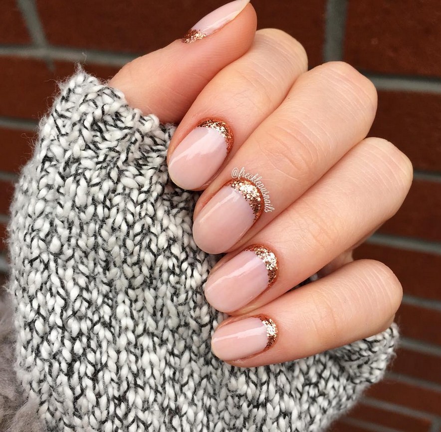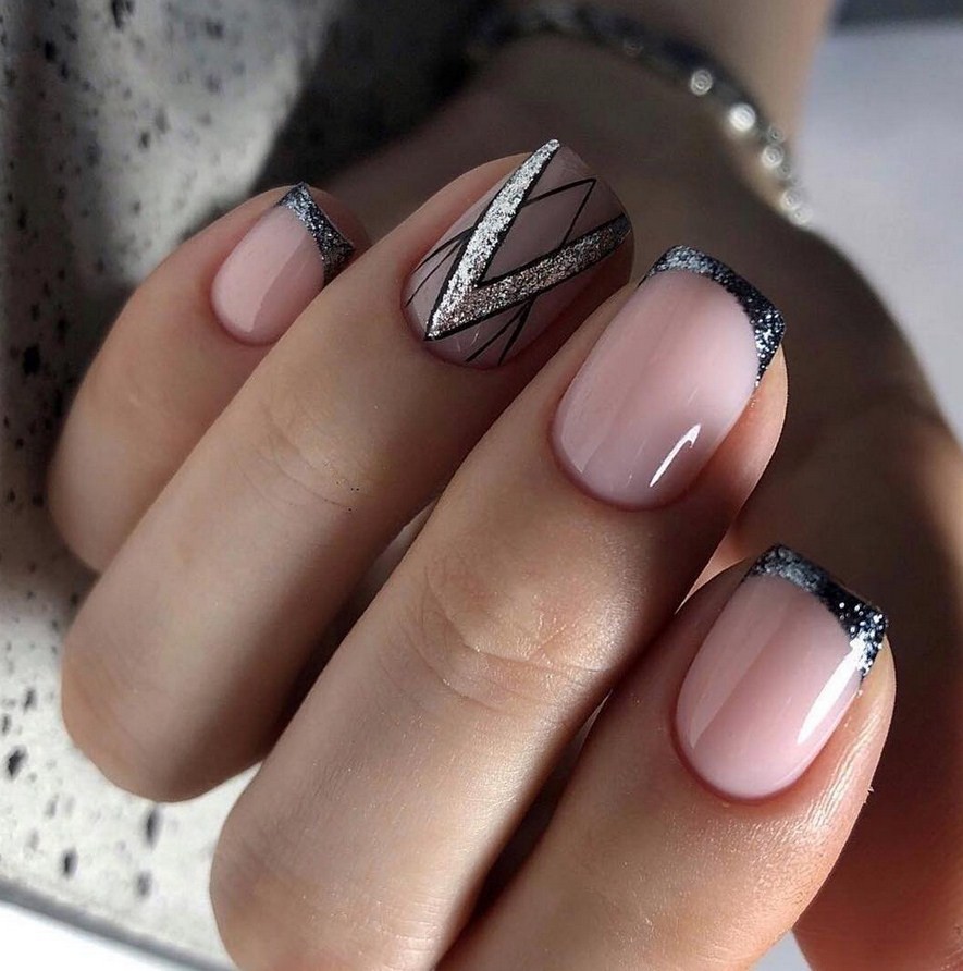- френч с блестками — сияющие частицы можно заложить в основу или в финишное покрытие.