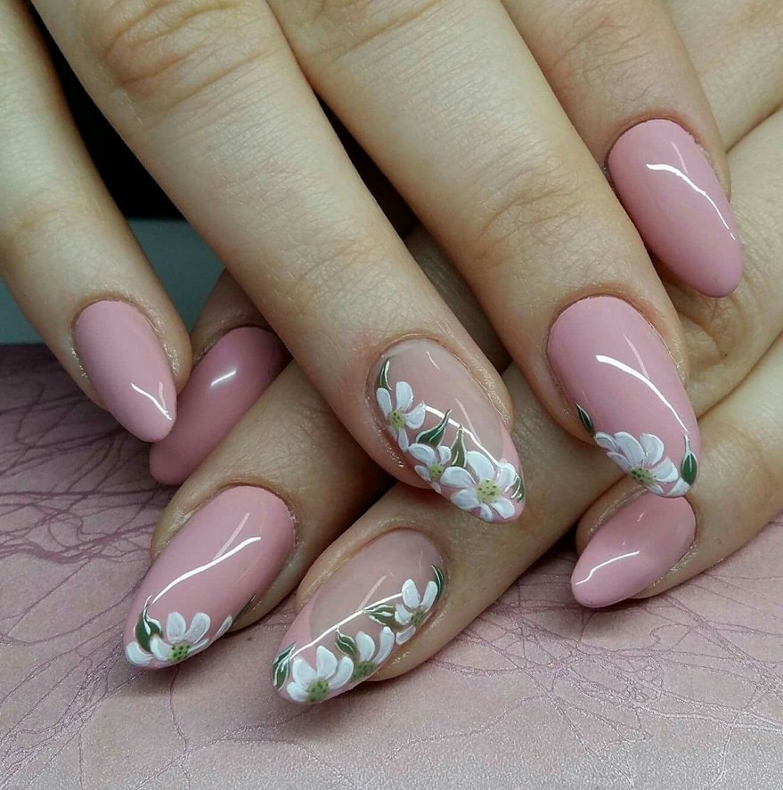 Найти фото маникюра с флористическими картинками несложно, ведь подобный дизайн считается наиболее популярным. Дополнить френч цветочками, листиками, веточками – шикарная летняя идея.