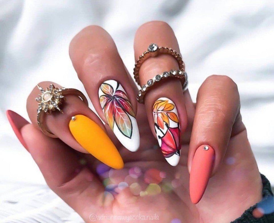 Яркие цветочные принты на миндалевидной форме ногтей еще никто не отменял. Особенно они будут пользоваться бешенной популярностью весной и летом. Ведь они невероятно гармонично вписываются в романтичные образы.