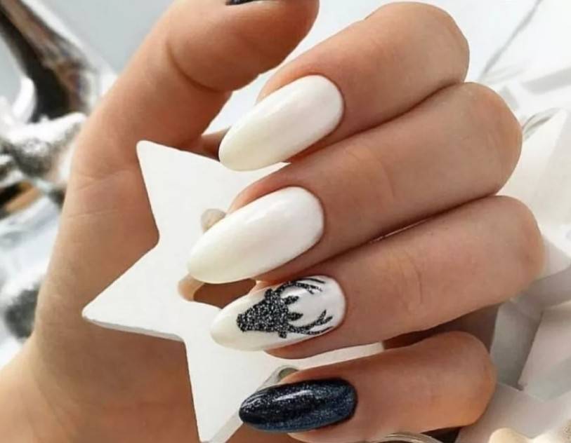 Очень красиво смотрятся рисунки, новогодние символы, блестящие элементы. Популярны слегка небрежно нанесенные узоры.