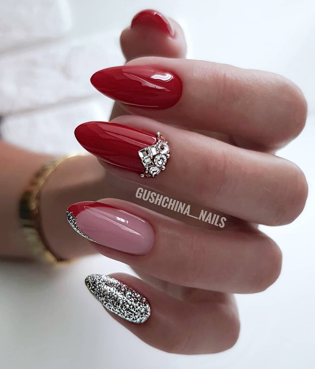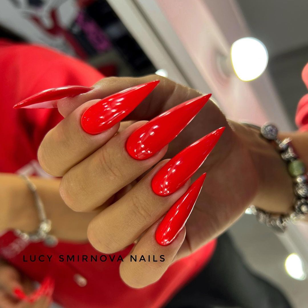Длинные красные ногти на НГ