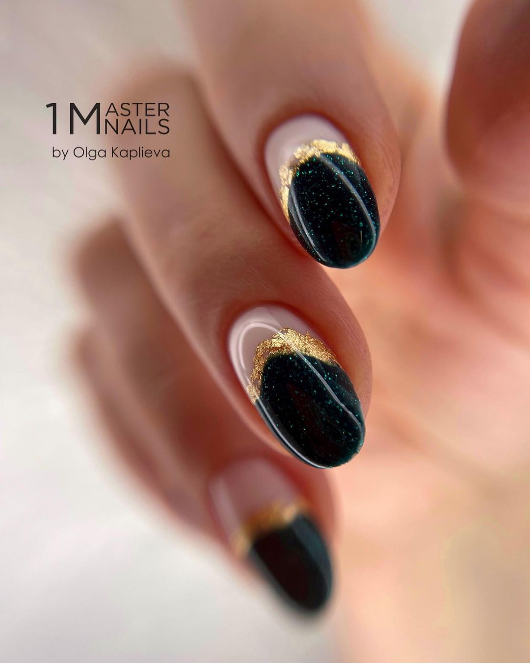 Маникюр в зеленых тонах с фольгой