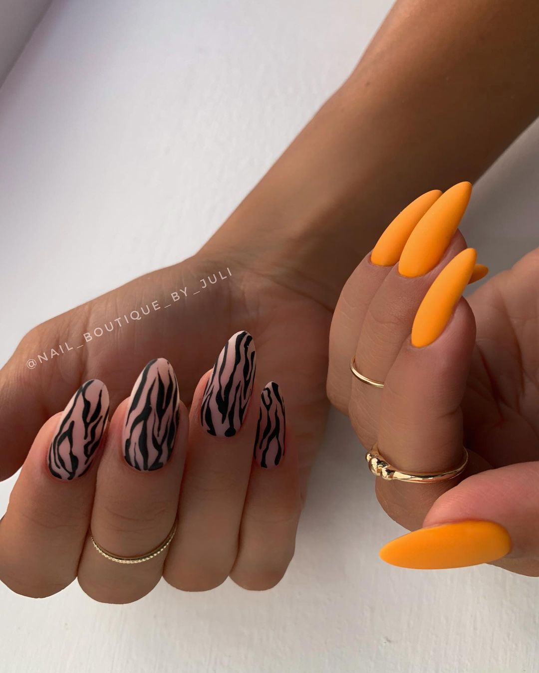 Используй вариант, который больше по душе — выбирать нужно исходя из навыков, имеющегося в запасе времени, материалов и инструментов. Если решишь сделать ручную роспись ноготка, то тут тоже есть как минимум два варианта.