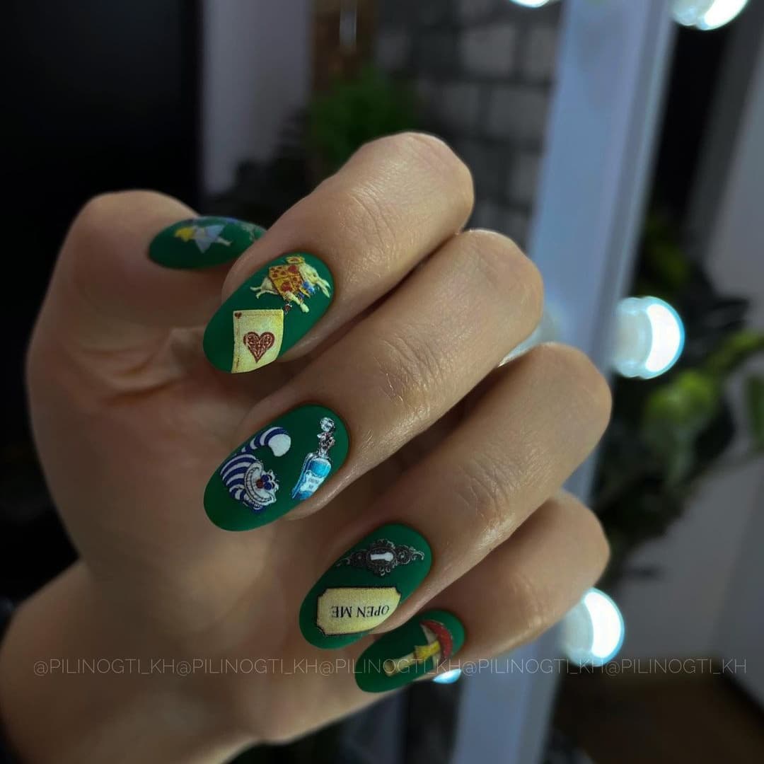 Изумрудный маникюр с рисунком
