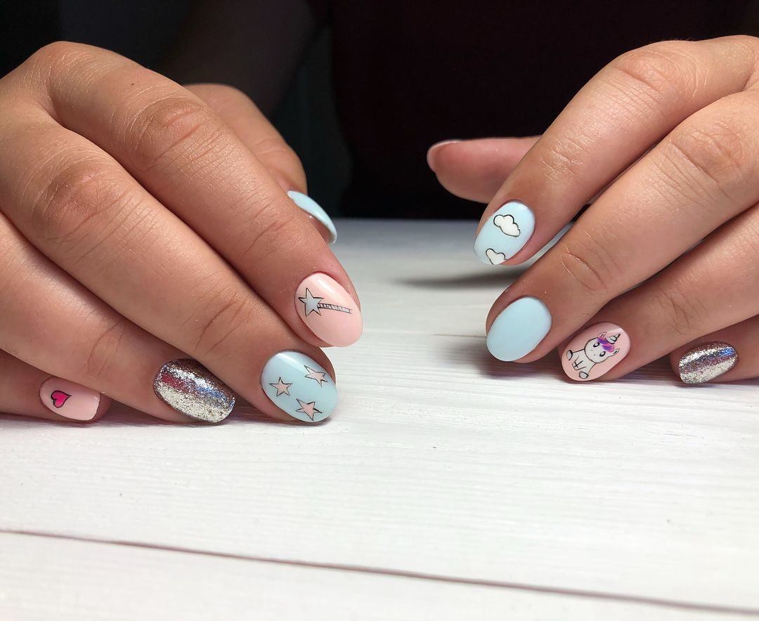 Как насчет двойной дозы блесток для маникюра? Сначала покройте ногти лаком для ногтей с мерцанием и нанесите сверху слой блесток (чем отличаются эти два инструмента, читайте в той же статье чуть ниже). Комбинируйте разные оттенки и текстуры, и если такой маникюр все же кажется вам излишним, создайте образ в формате негативного пространства, оставив края ногтей неокрашенными.