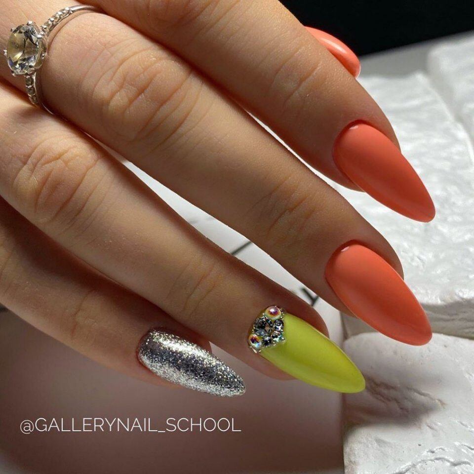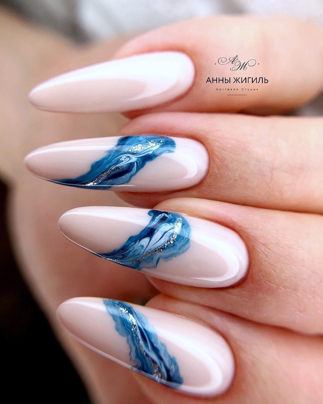 Трендом 2019-20 гг. считается использование длинных ногтей в форме «современный миндаль» (зауженный свободный край, который получается опилом из классической формы миндаль).