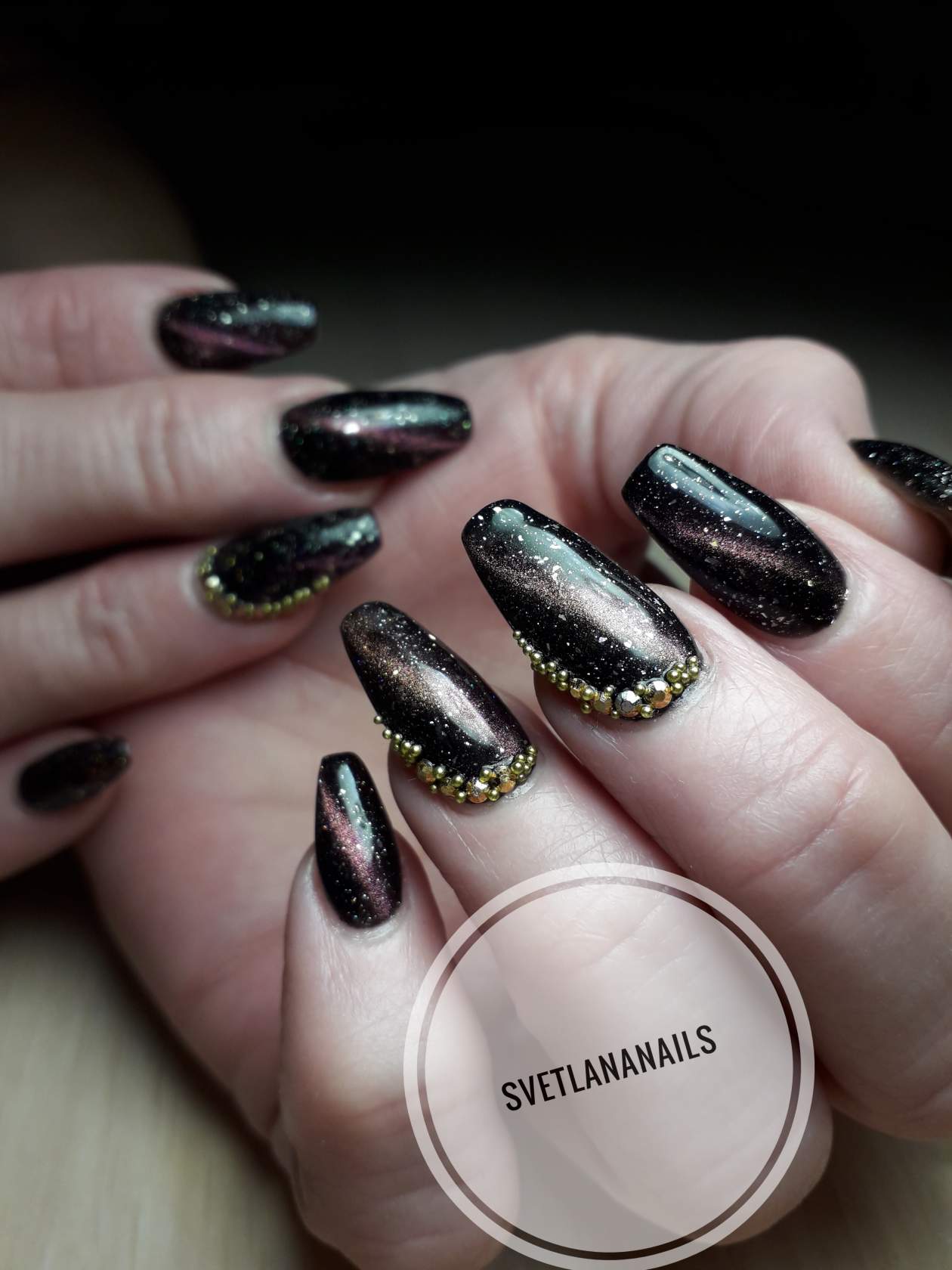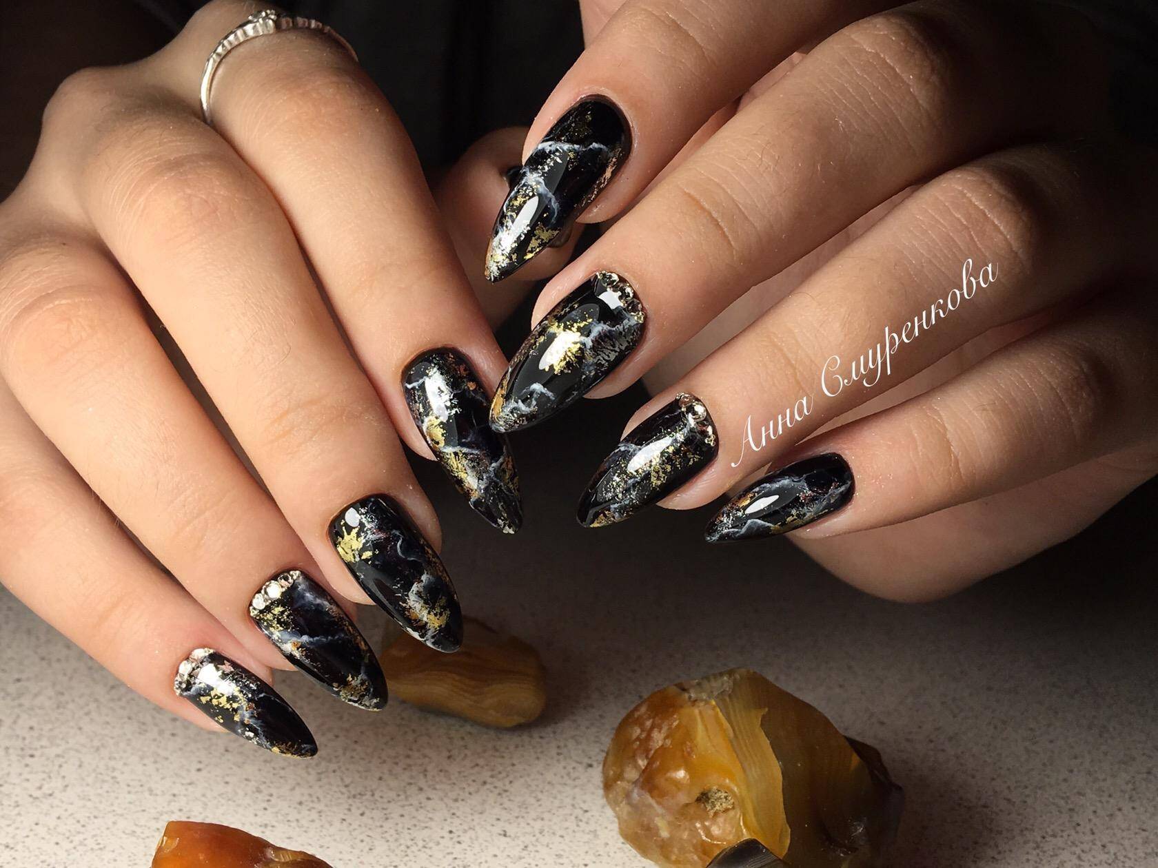 “Икорное” покрытие, роскошное сочетание черного и золотого или тонкая черно-черная линия на самом краю ногтя? А может быть, черный маникюр с нежными серебряными стразами? Все эти варианты маникюра могут быть очень привлекательными.