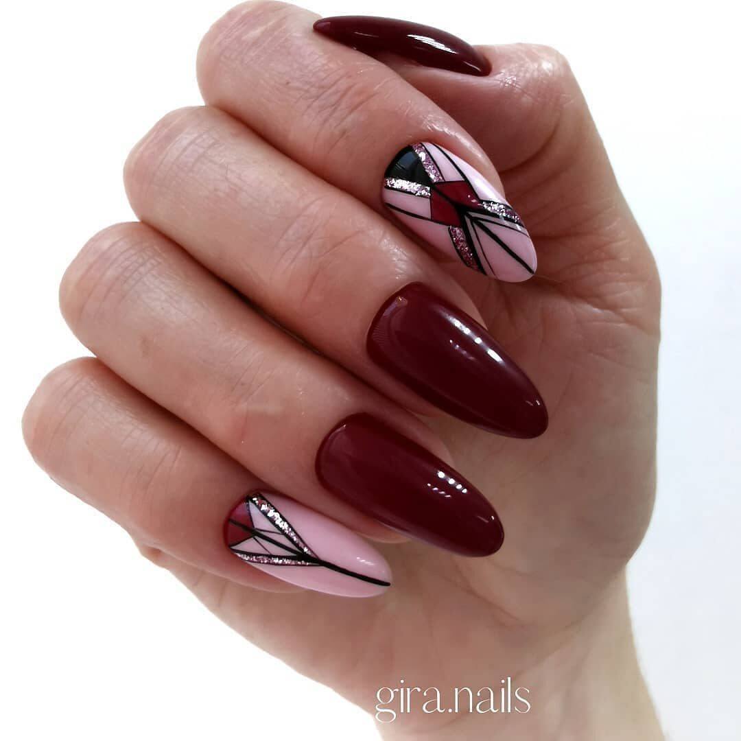 Модный маникюр с использованием геометрии станет отличным дополнением повседневного или праздничного дизайна ногтей. В этом дизайне важен выбранный фон. Поэтому сначала необходимо правильно выбрать оттенок краски для основы. Но дополнительные цвета должны быть контрастными, чтобы в результате получился красивый геометрический узор. Золотые блестки можно использовать для выделения контура рисунка, придавая маникюру яркости и оригинальности.