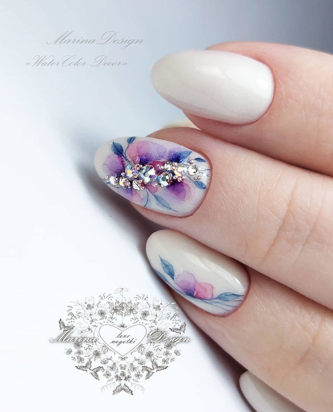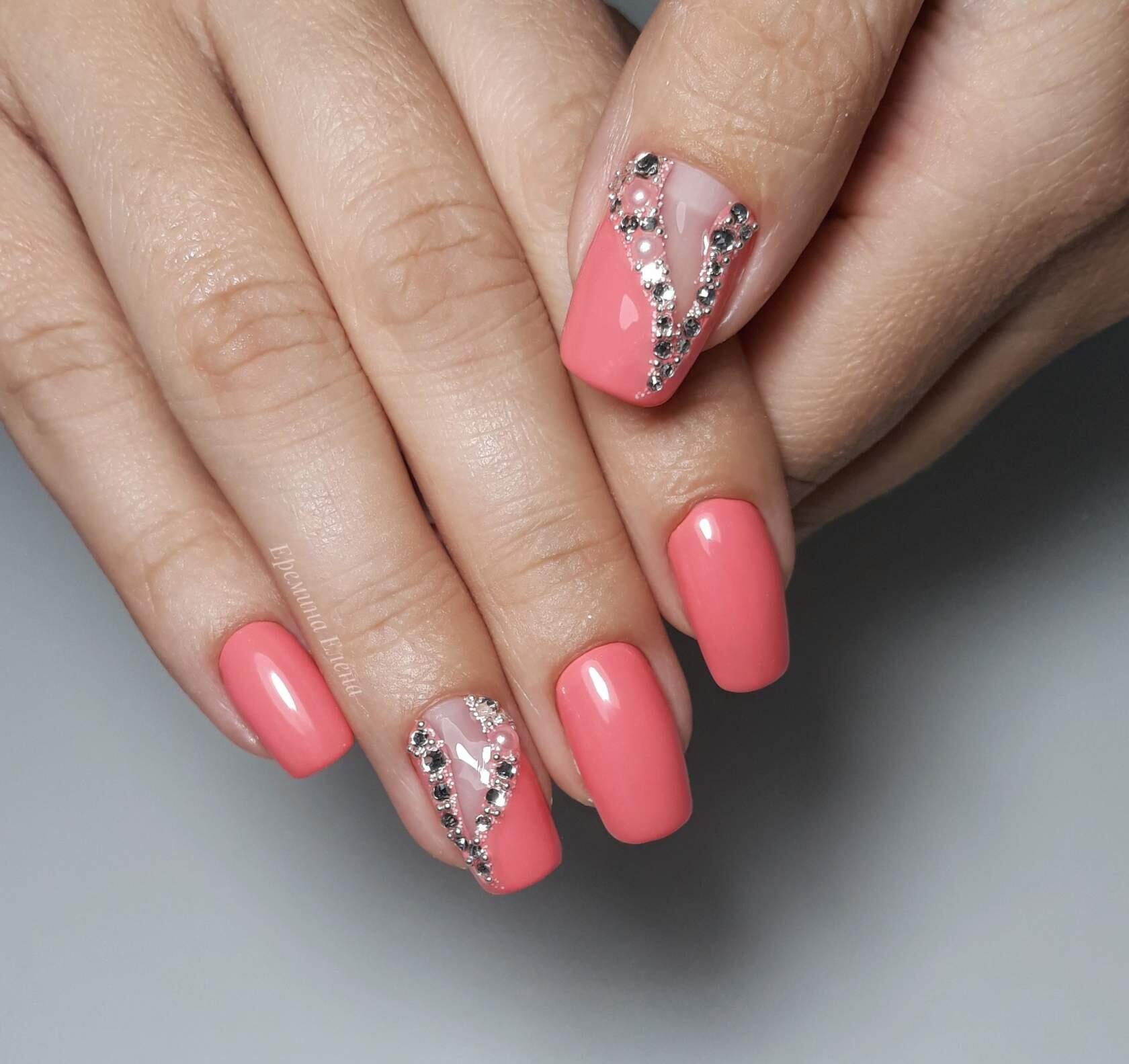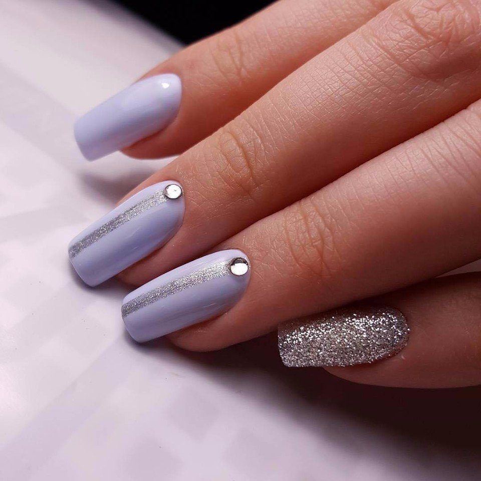 Если у вас насыщенный график, то покрытые блестящим лаком ногти можно дополнить несколькими ослепительными стразами. Сдержанный дневной маникюр за пару минут засияет новыми яркими красками, которые будут уместны на любом вечернем мероприятии.