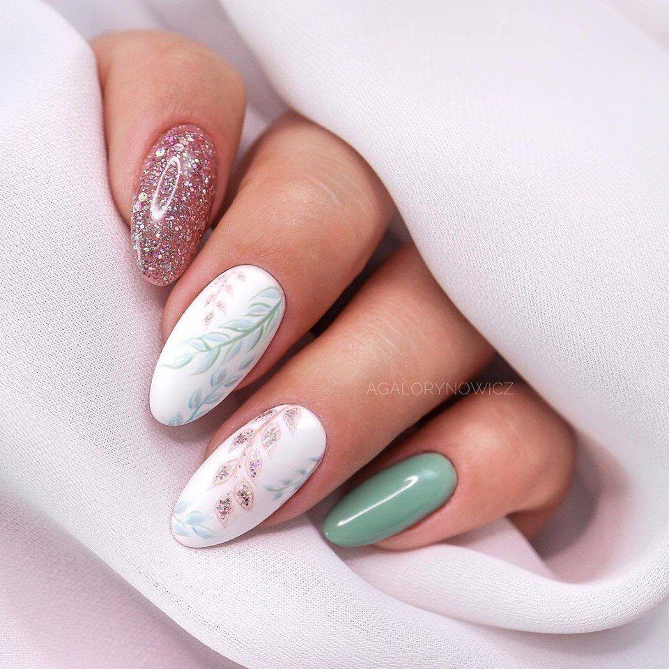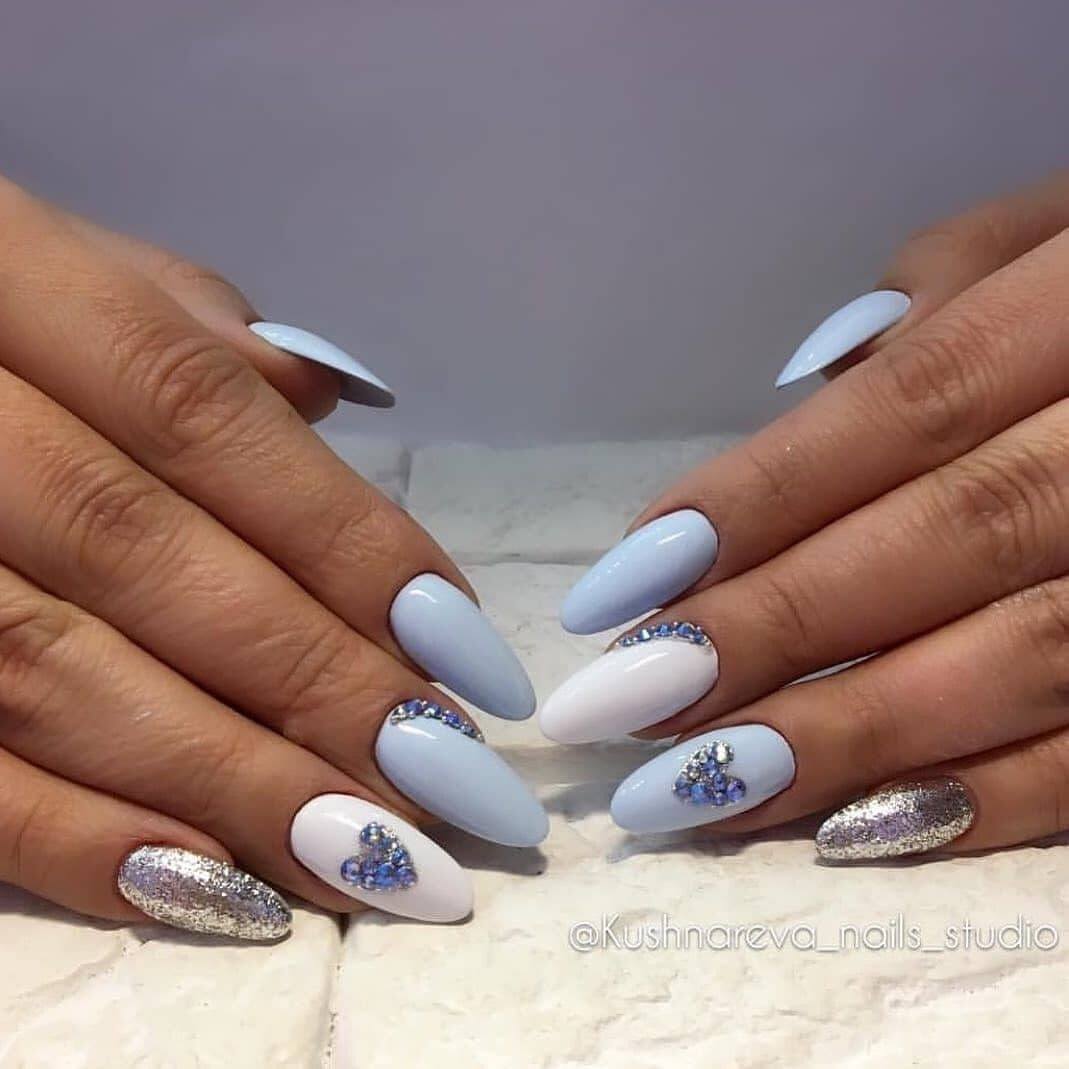 Сочетайте белый цвет с блестками, чтобы создать роскошный, привлекающий внимание и дорогой маникюр. Черные, красные, синие, изумрудные и фиолетовые блестки на белом маникюре подходят для делового или вечернего стиля и лучше всего подчеркиваются матовым покрытием