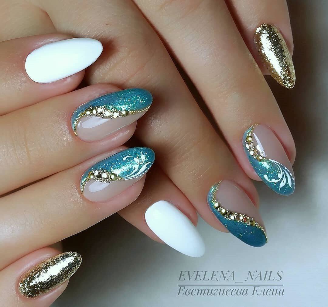 Украшения для ногтей в виде бриллиантов и сапфиров, золотых цепочек и кулонов — один из главных трендов этого года. Поищите такие аксессуары в магазинах для рукоделия и в магазинах для ногтей.