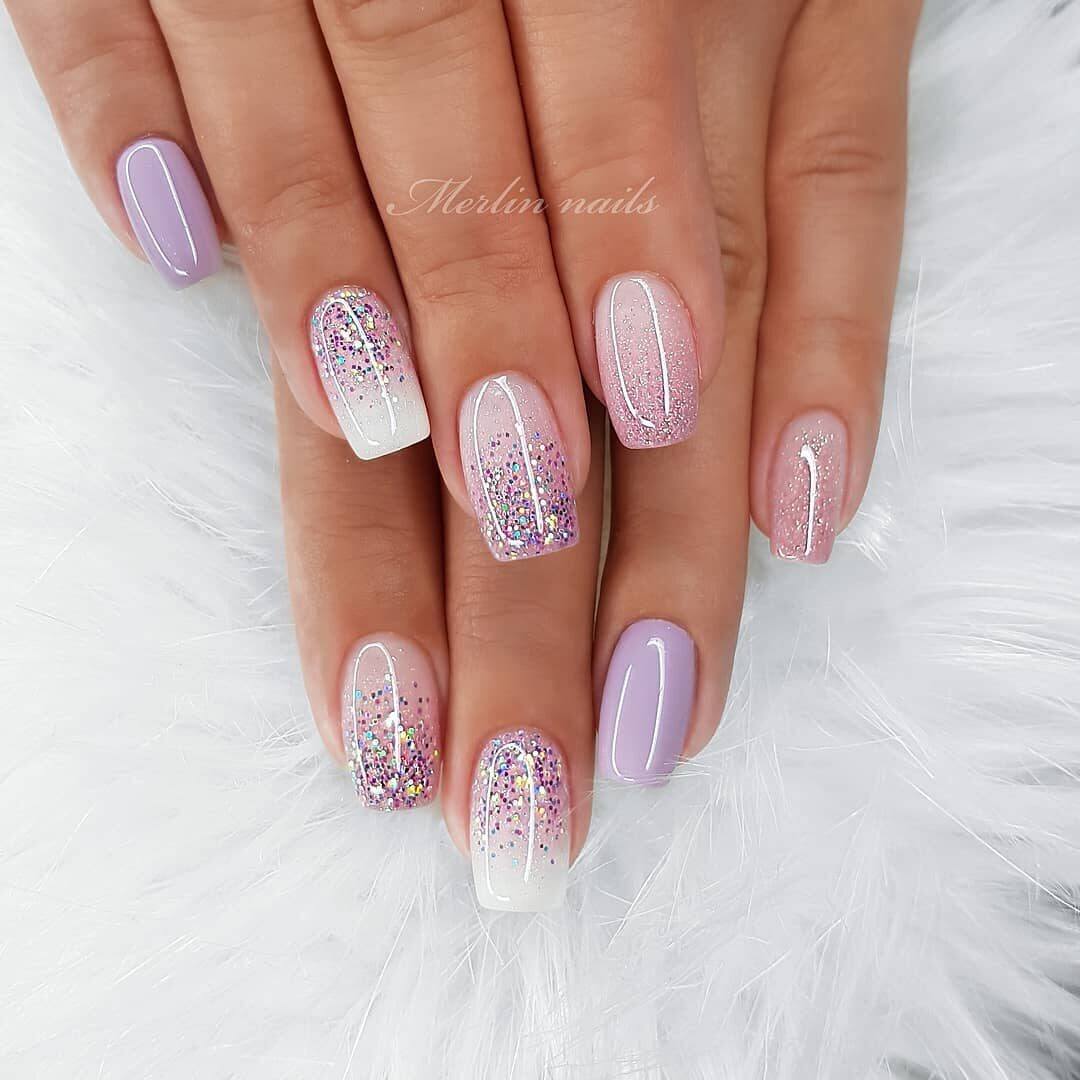 Маникюр с блёстками давно не считается броским и вульгарным, подтверждением чему является наш материал. Не бойтесь экспериментировать с выбором оттенков покрытия и декором.