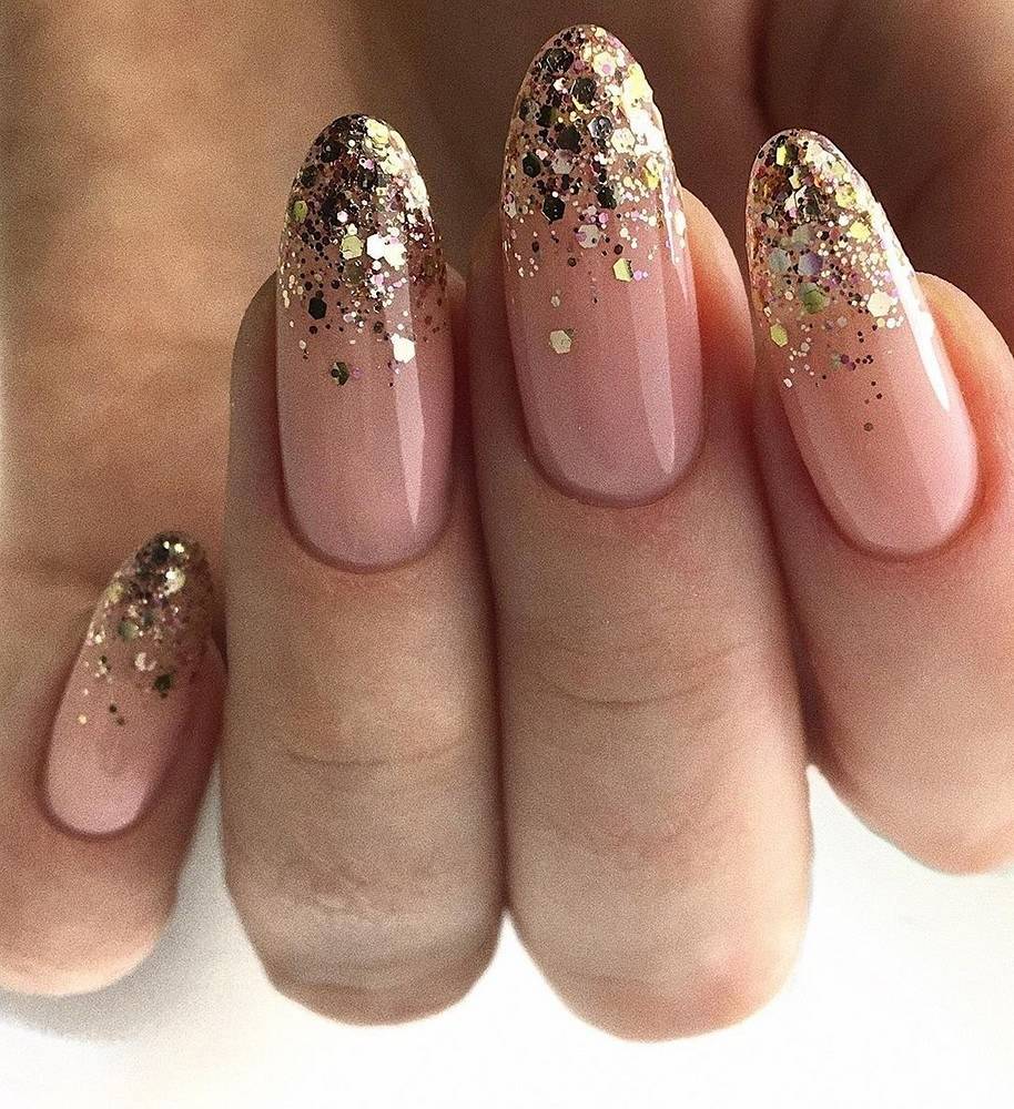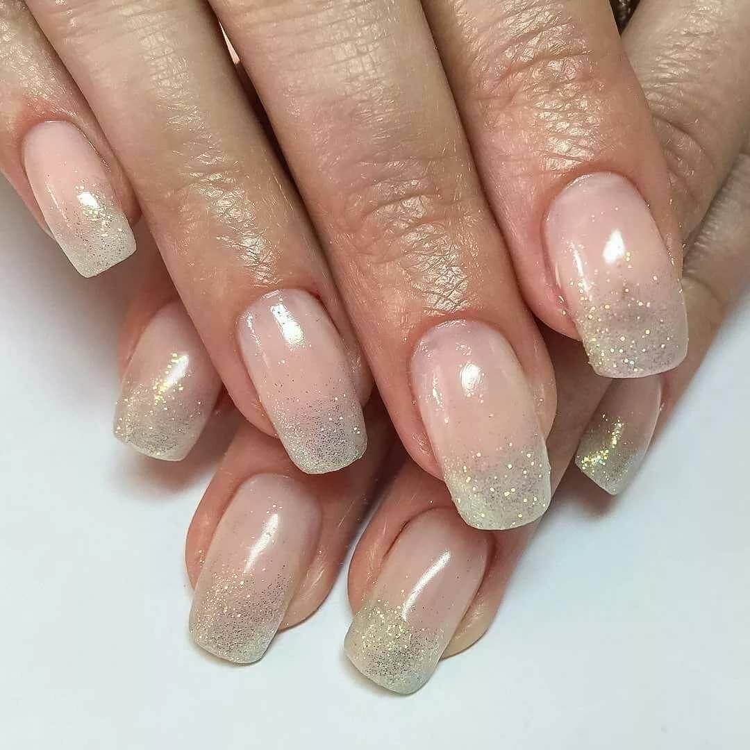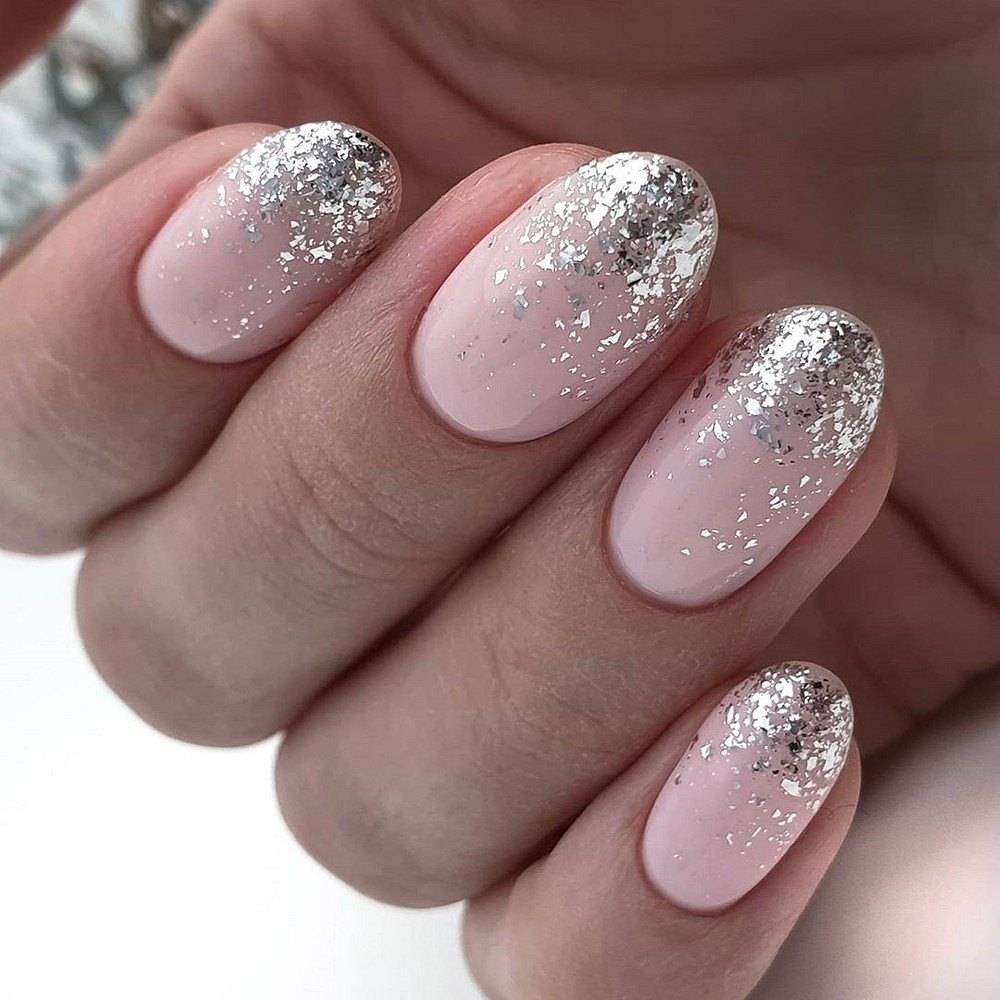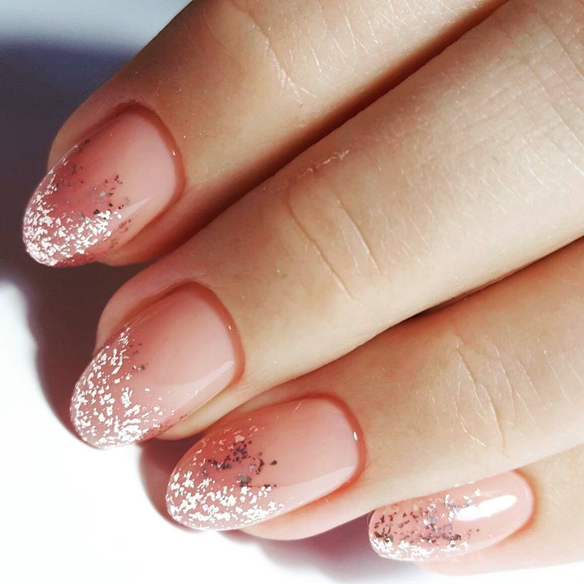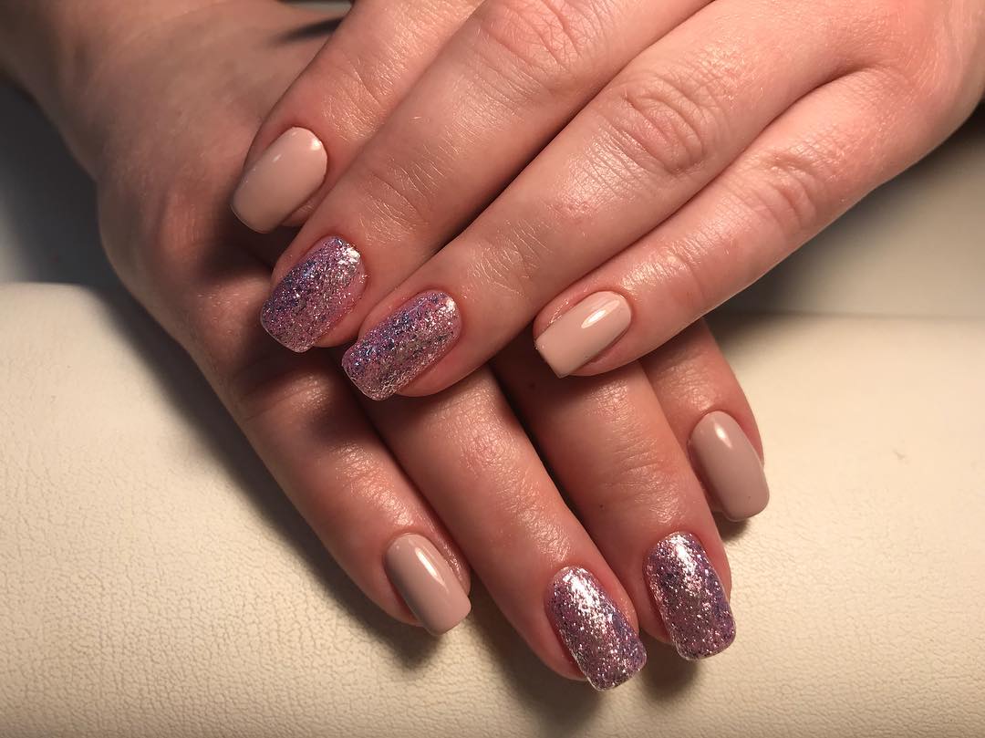 - Наносить блестки можно и на нюдовое покрытие – так вы создадите очень нежный и элегантный дизайн.