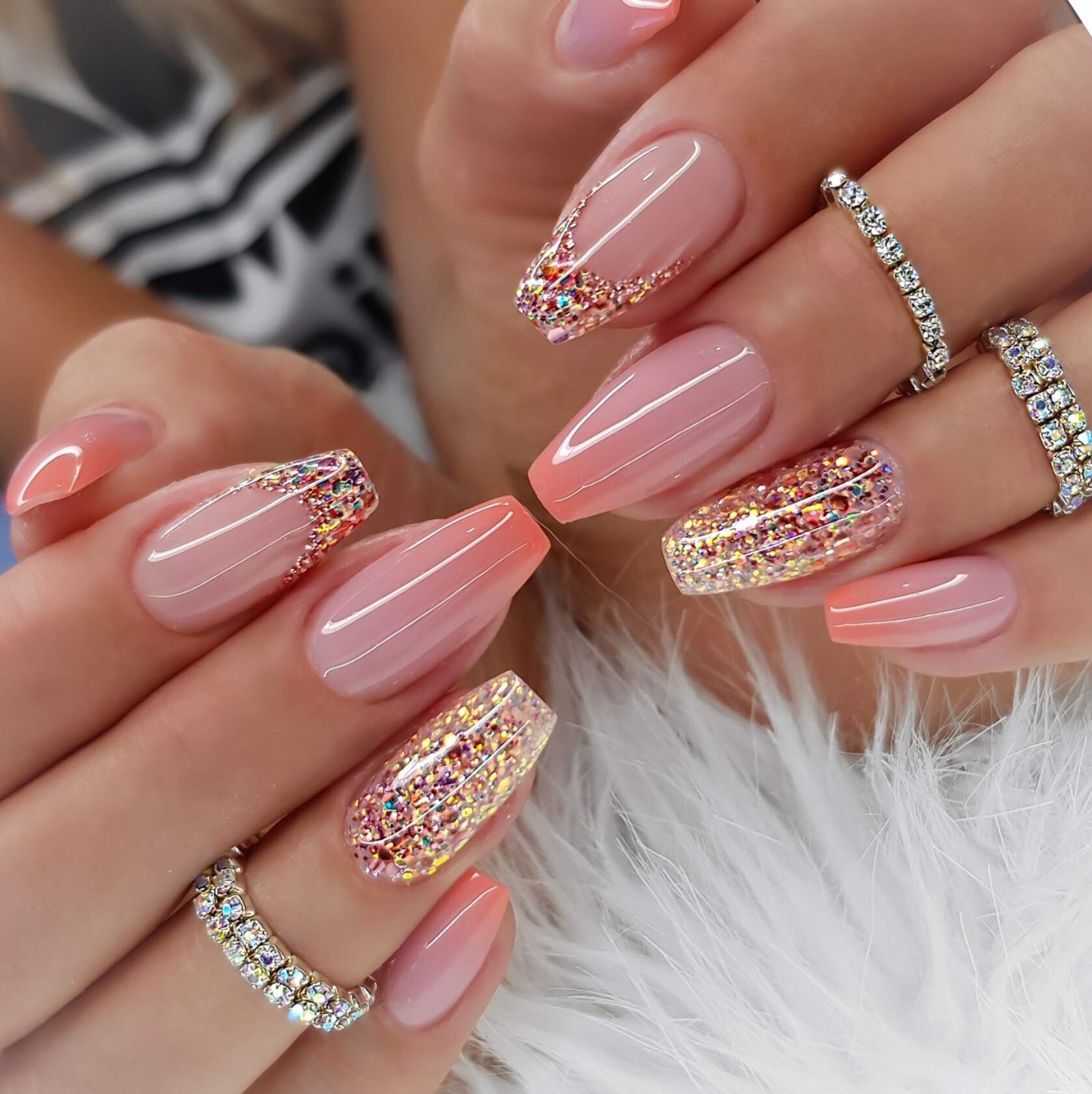 Чтобы каждая модница смогла подобрать для себя самый подходящий вариант дизайна ногтей с блестками, мы сделали подборку фото, на которых представлены стильные нейл-новинки.