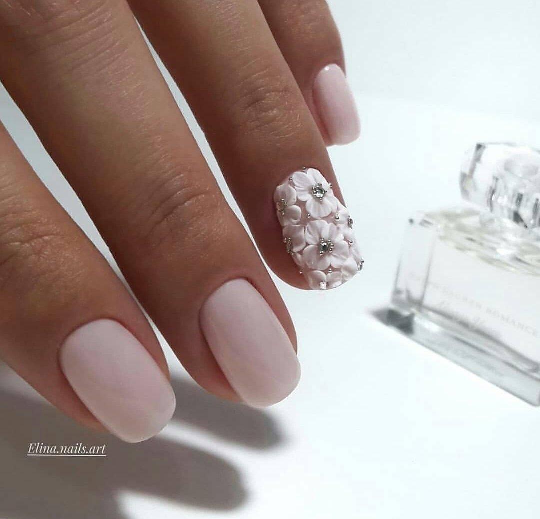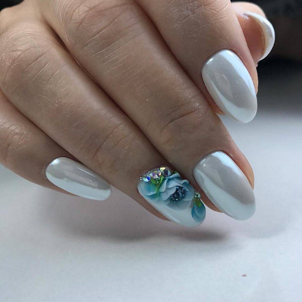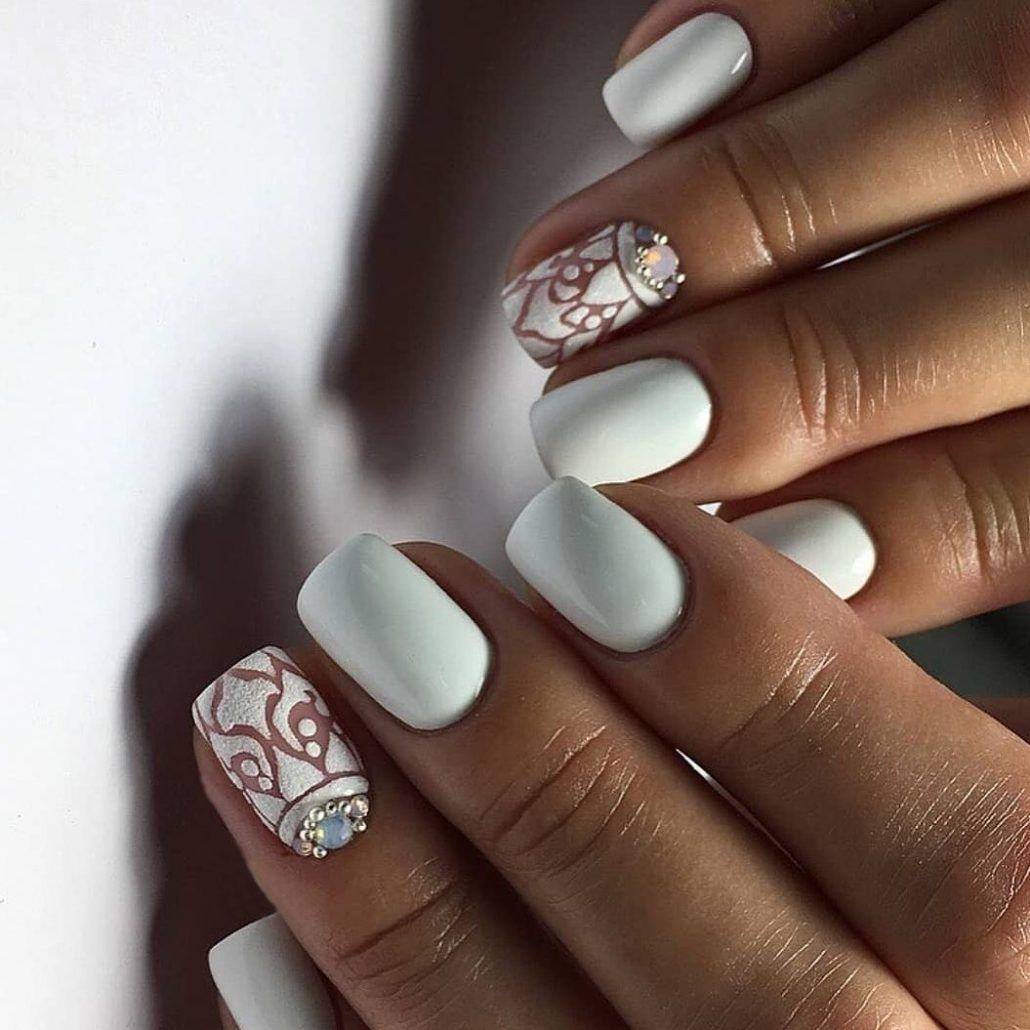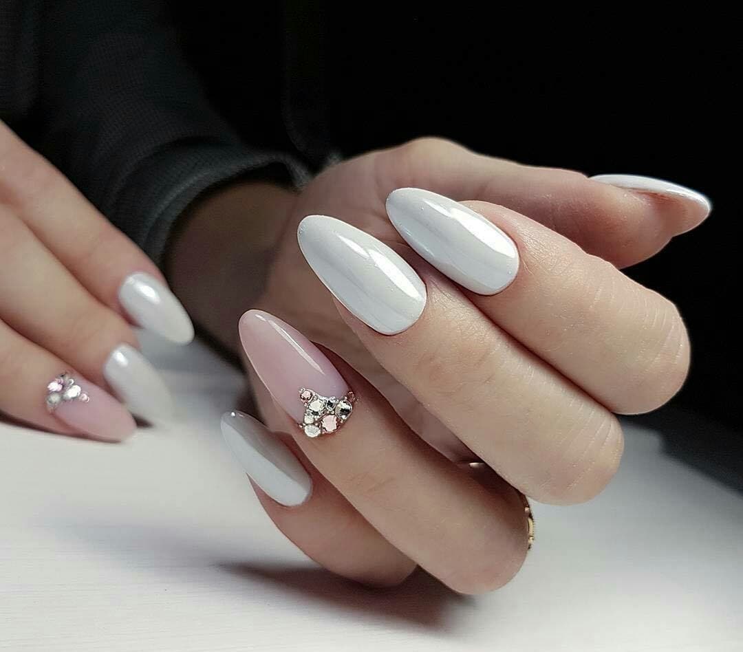 Именно свадебный маникюр со стразами практически не имеет ограничений, ведь здесь можно играть с фактурами, количеством и цветами камушков, узорами и рисунками гель лаком и лепкой.