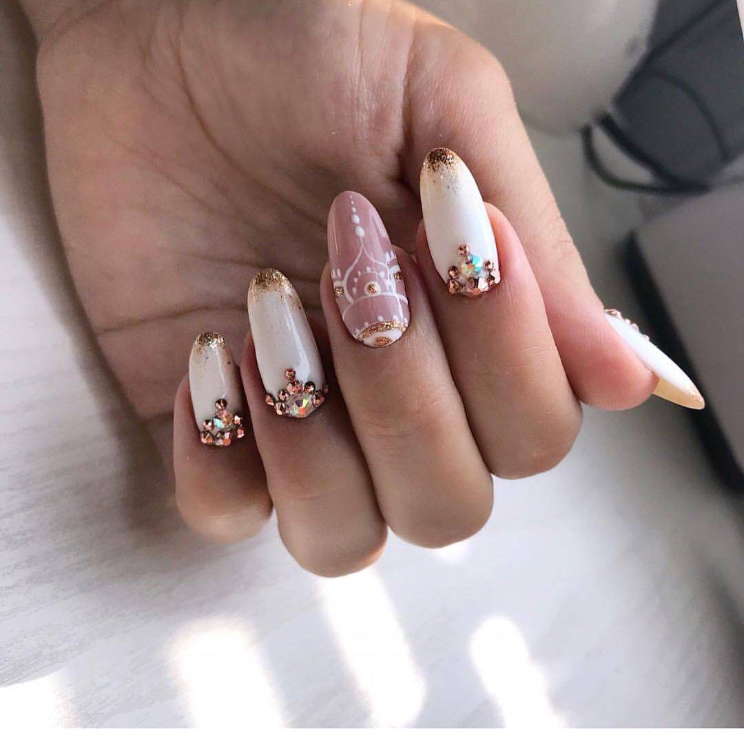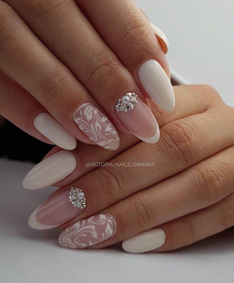 Как мы уже упоминали, маникюр со стразами просто идеален в качестве свадебного нейл-арта.