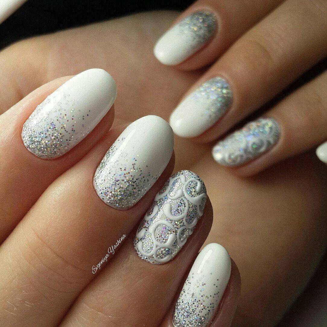 Омбре или растяжка блестками от основания ногтя к середине или наоборот к кончикам ногтей — довольно неоднозначный дизайн. Прекрасно подойдет как к праздничной атмосфере, так и к повседневной.