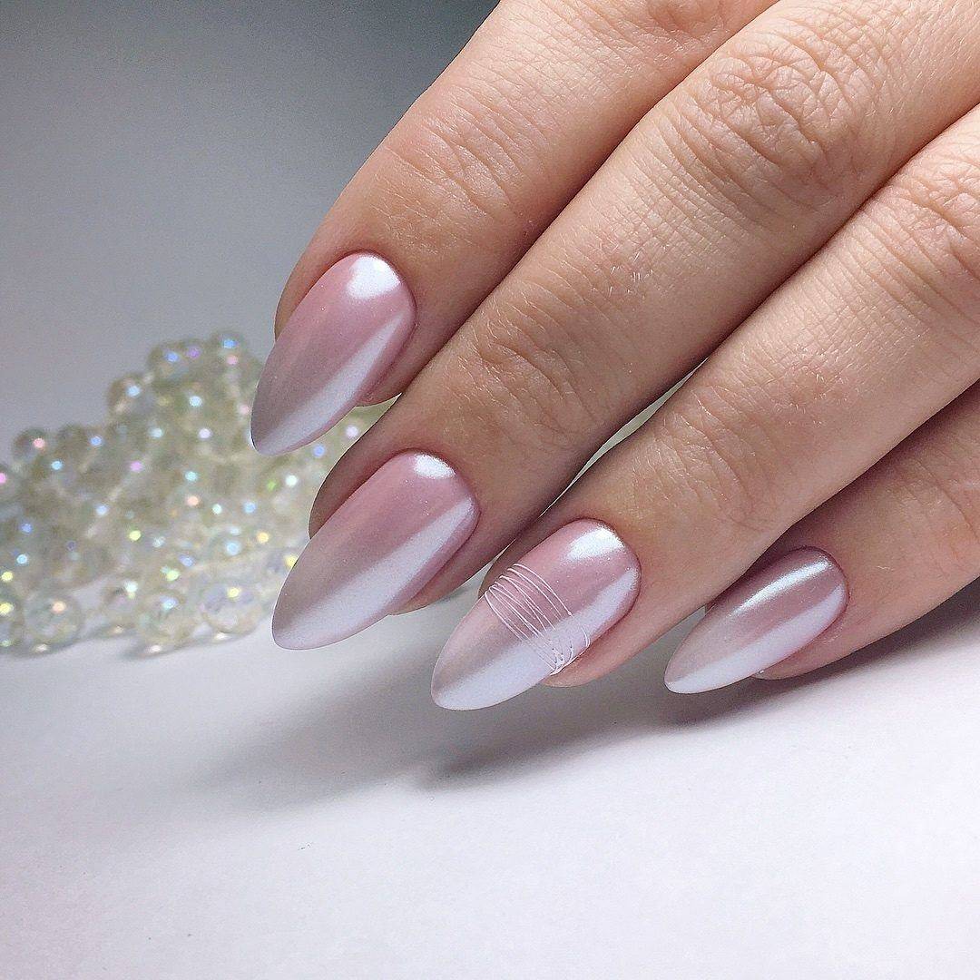 На коротких ногтях великолепно выглядит дизайн с втиркой. Материал позволяет визуально облагородить ногти, сделать их аккуратнее. Особенно актуальна жемчужная втирка, которая в сочетании с белым оттенком, создает потрясающий женственный дизайн ногтей.