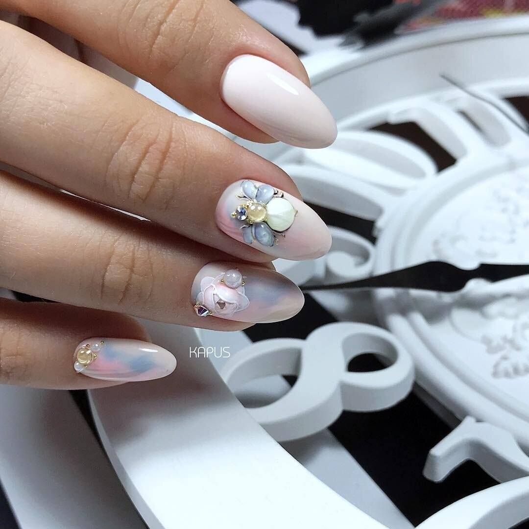 Если вы хотите добавить в нейл-арт что-то необычное, сочетайте дизайн ногтей со стразами с рисунками и узорами
