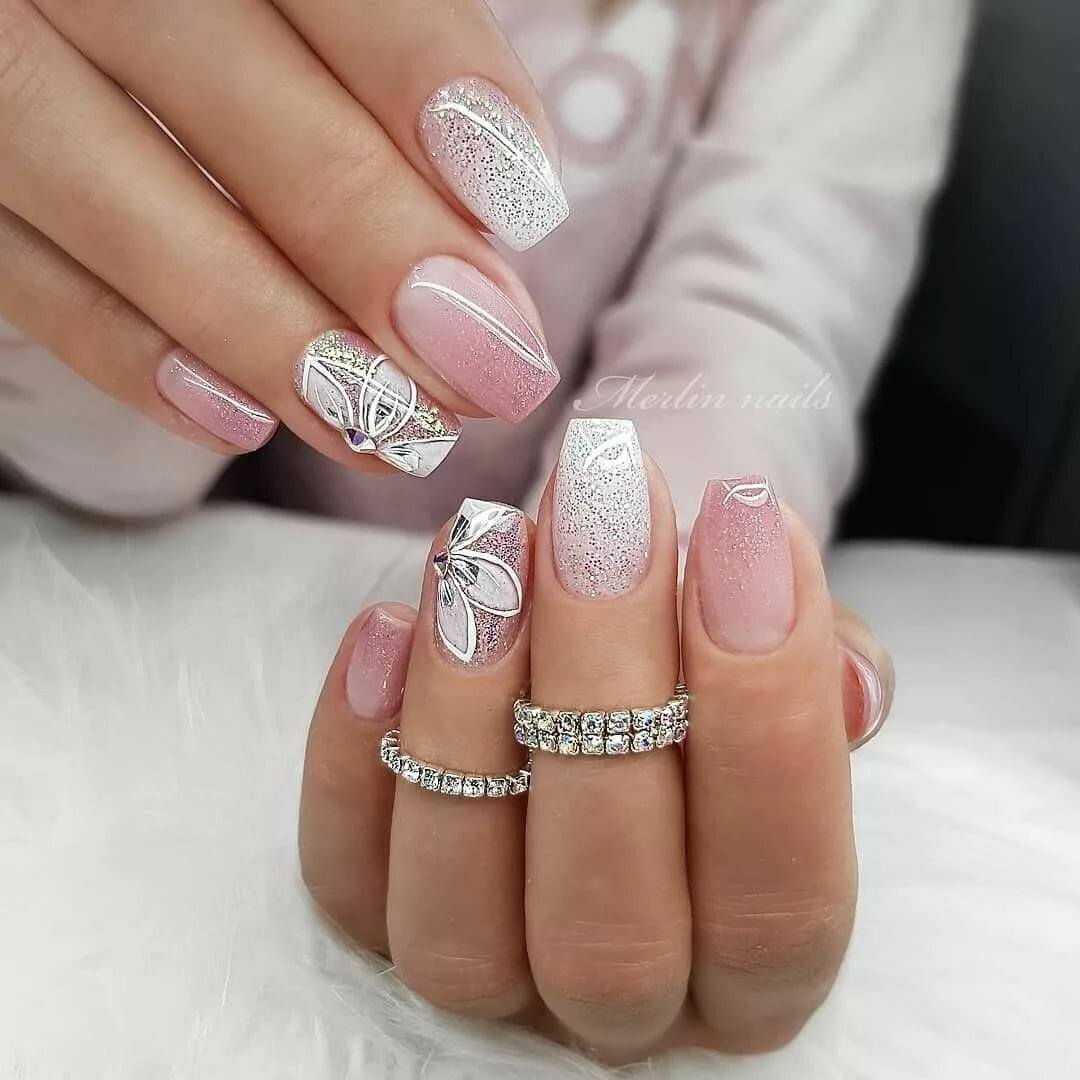 #3 Стильный маникюр с блестками на короткие ногти 2021