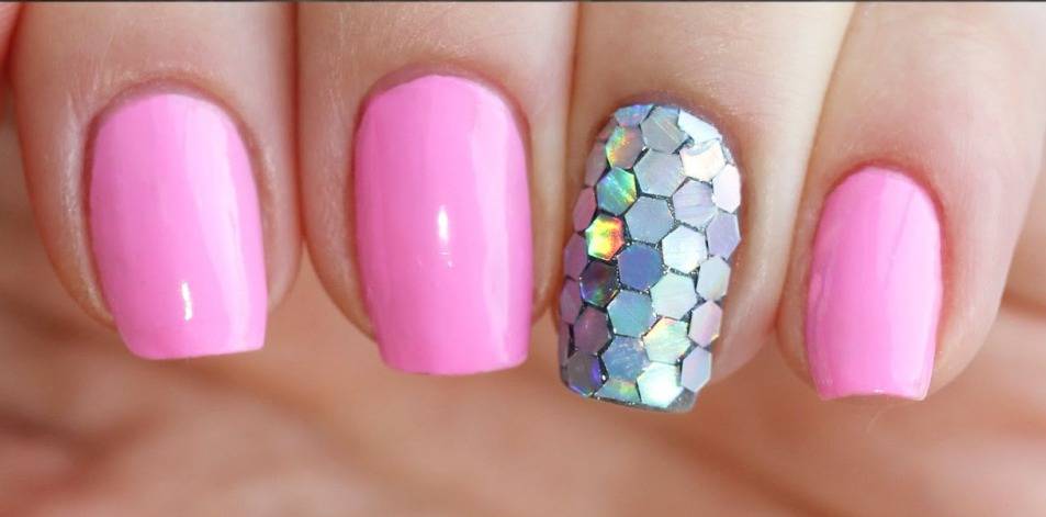 - каждый палец оформляется индивидуально, украсив их блестками разных цветов, формы, размера. Эти элементы помогут создать действительно оригинальный нейл-арт.