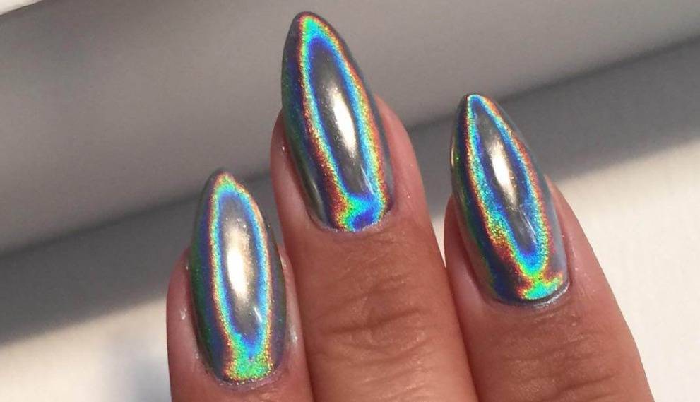 Таким методом можно наносить декор, если вы хотите покрыть блеском весь ноготь или сделать градиент. В основном мельчайшая блестящая пыль выпускается в двух вариациях – с серебряным и золотым сиянием.