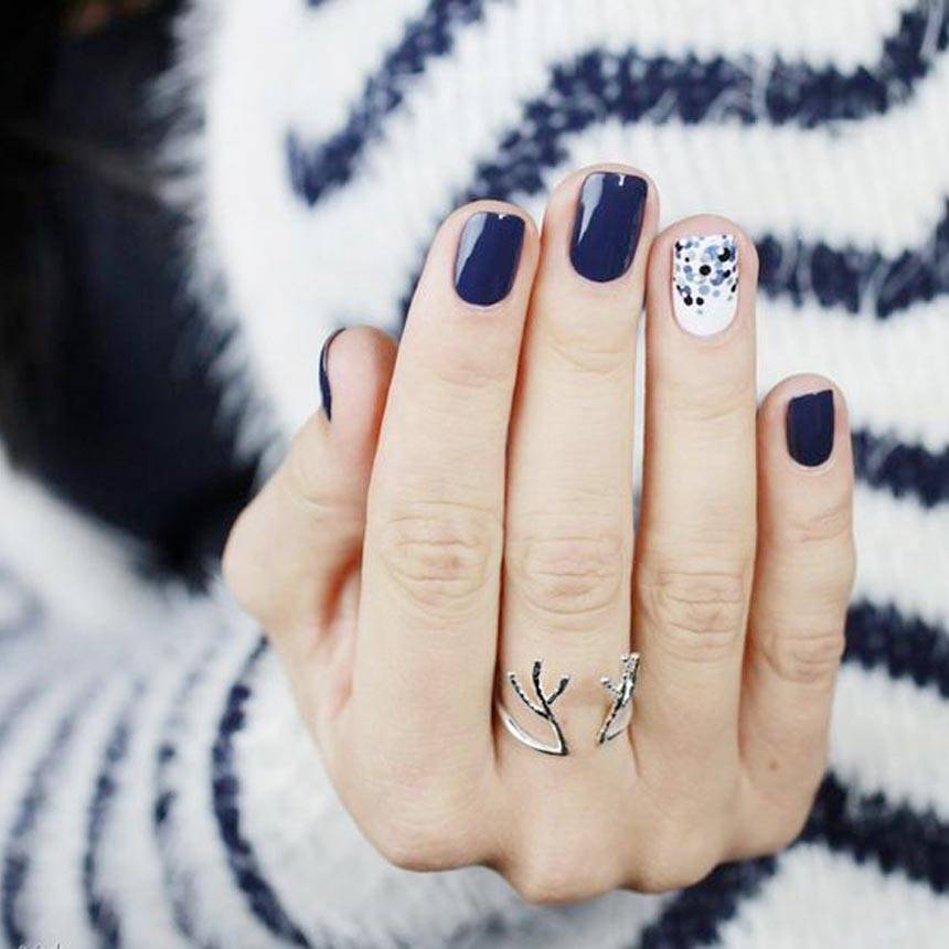 Сногсшибательные идеи дизайна с блестками активно используются не на всех пальцах, а на одном