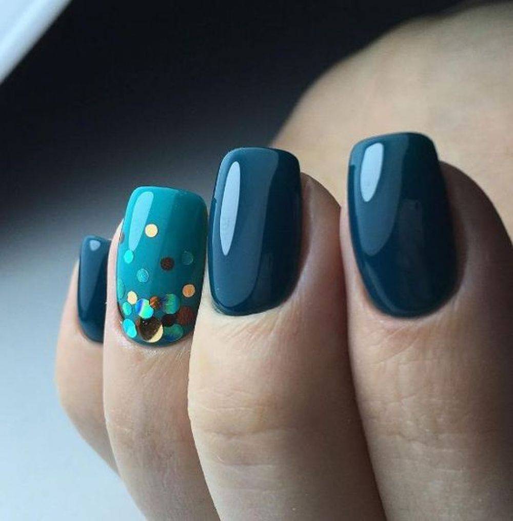 Но все же каждый раз создавать новый дизайн маникюра с пайетками собственными силами и благодаря своей фантазии – занятие увлекательное. Золотые пайетки наиболее выигрышно смотрятся на фоне синих тонов, а также сиреневого, зеленого, черного, красного и бордового. Разноцветные пайетки-конфетти лучше всего сочетаются с лаками-основой нежных пастельных оттенков.