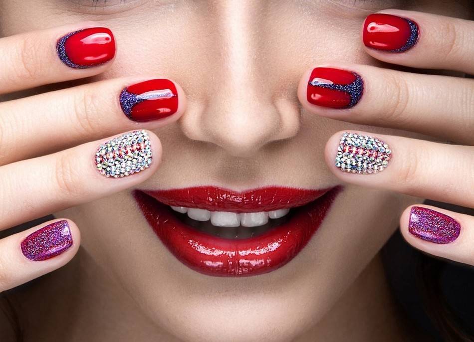В любом дизайне маникрюра – красный цвет отлично комбинируется с синим