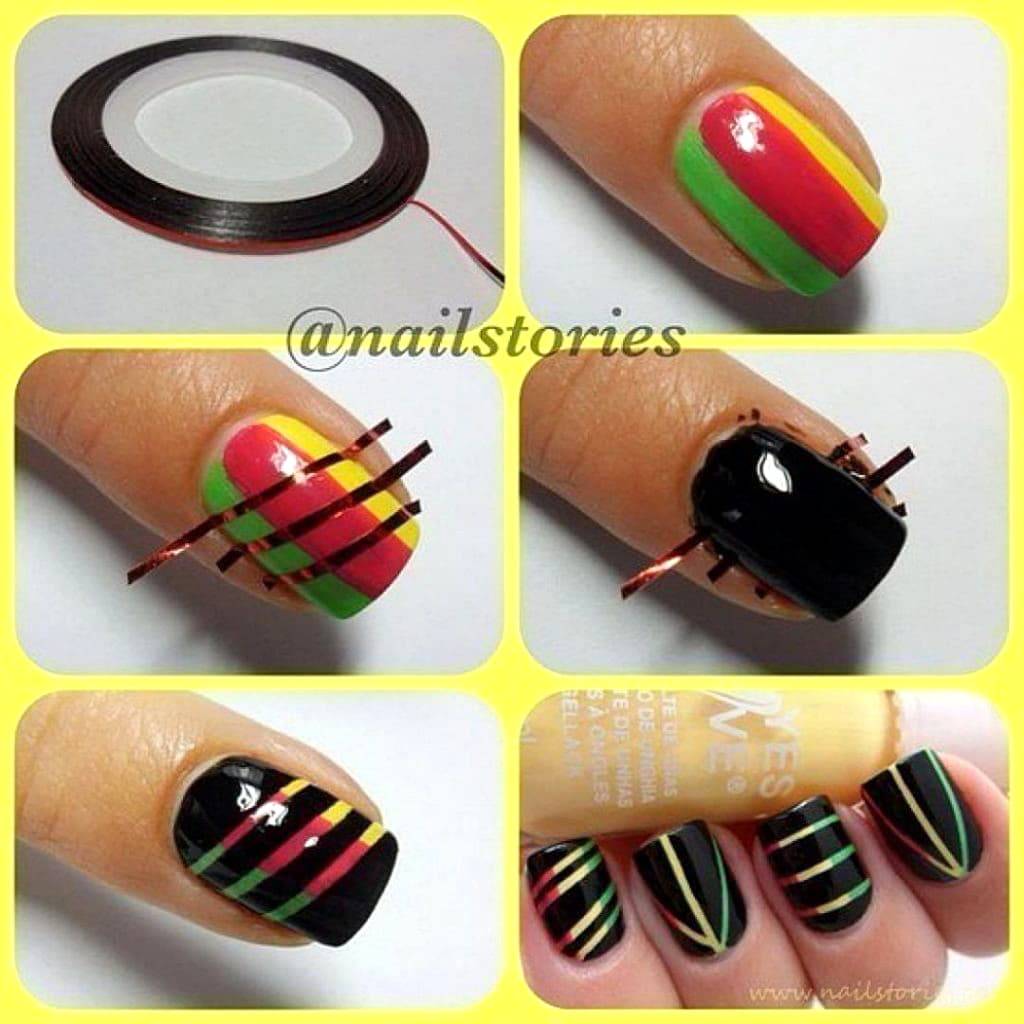 - Прокрашивай ногтевую пластину тонким слоем и не выходи за границы полосок.