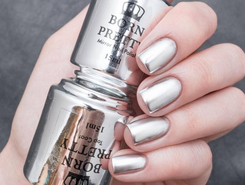 Самый простой способ добиться зеркального эффекта на ногтевых пластинах – покрасить глянцевым лаком. Речь идет о традиционном лаковом покрытии с хромированным финишем. На рынке много подобных предложений в нескольких интересных оттенках. Метод можно выполнять и с использованием гель-лаков, что обеспечит большую стойкость и более красивый вид. Но для шеллака понадобится приобрести специальную УФ или светодиодную лампу и максимально тщательно подготовить ногтевые пластины.