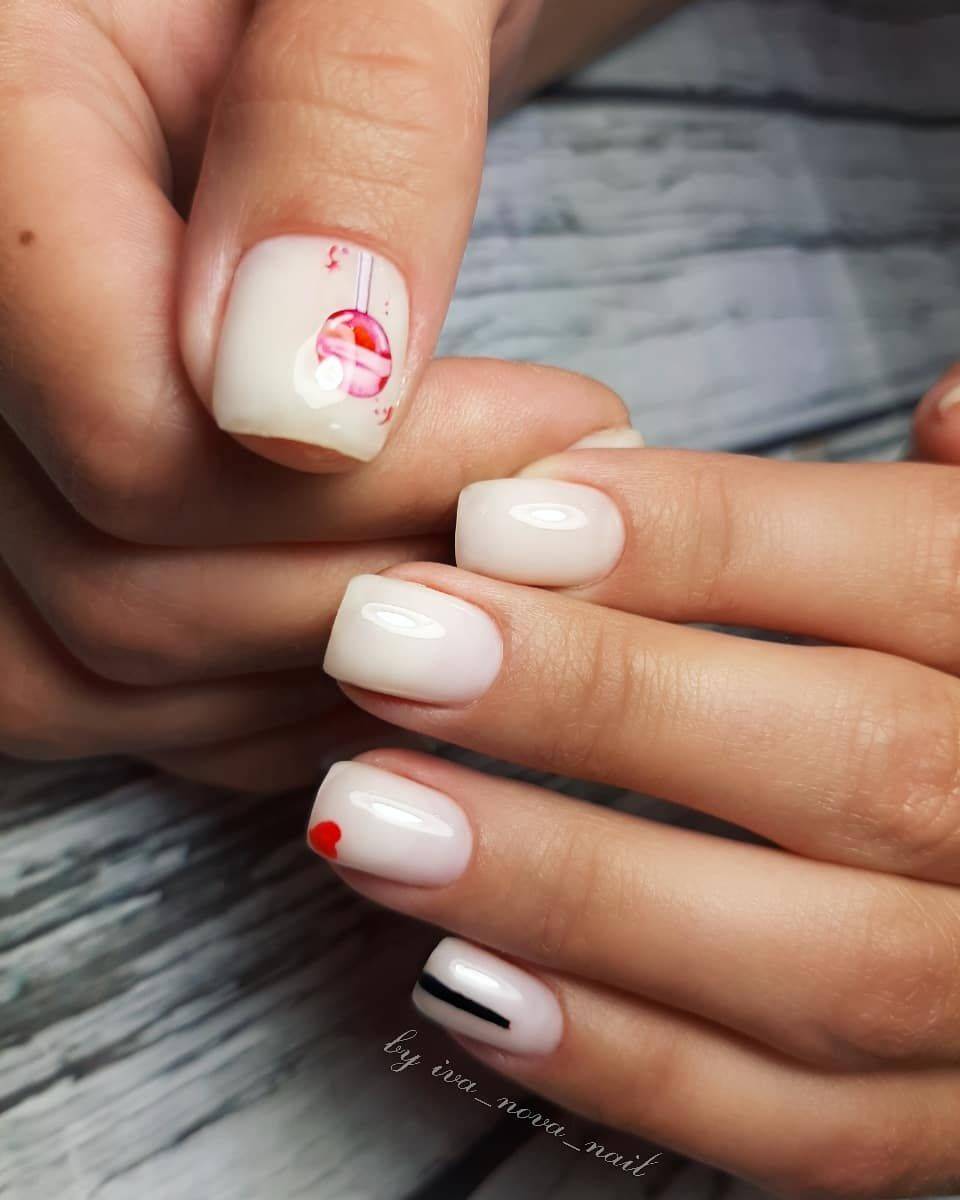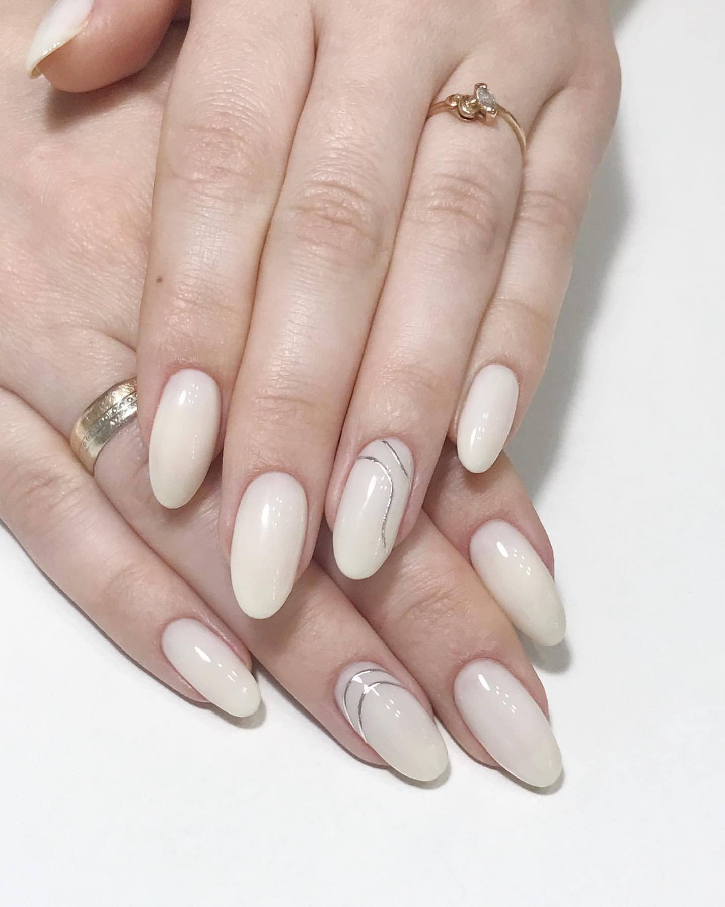 Молочный цвет, как и все светлые тона, обязательно необходимо наносить на ногти в несколько слоев. Это позволит избавиться от непрокрашенных зон и других погрешностей ногтевой пластины.