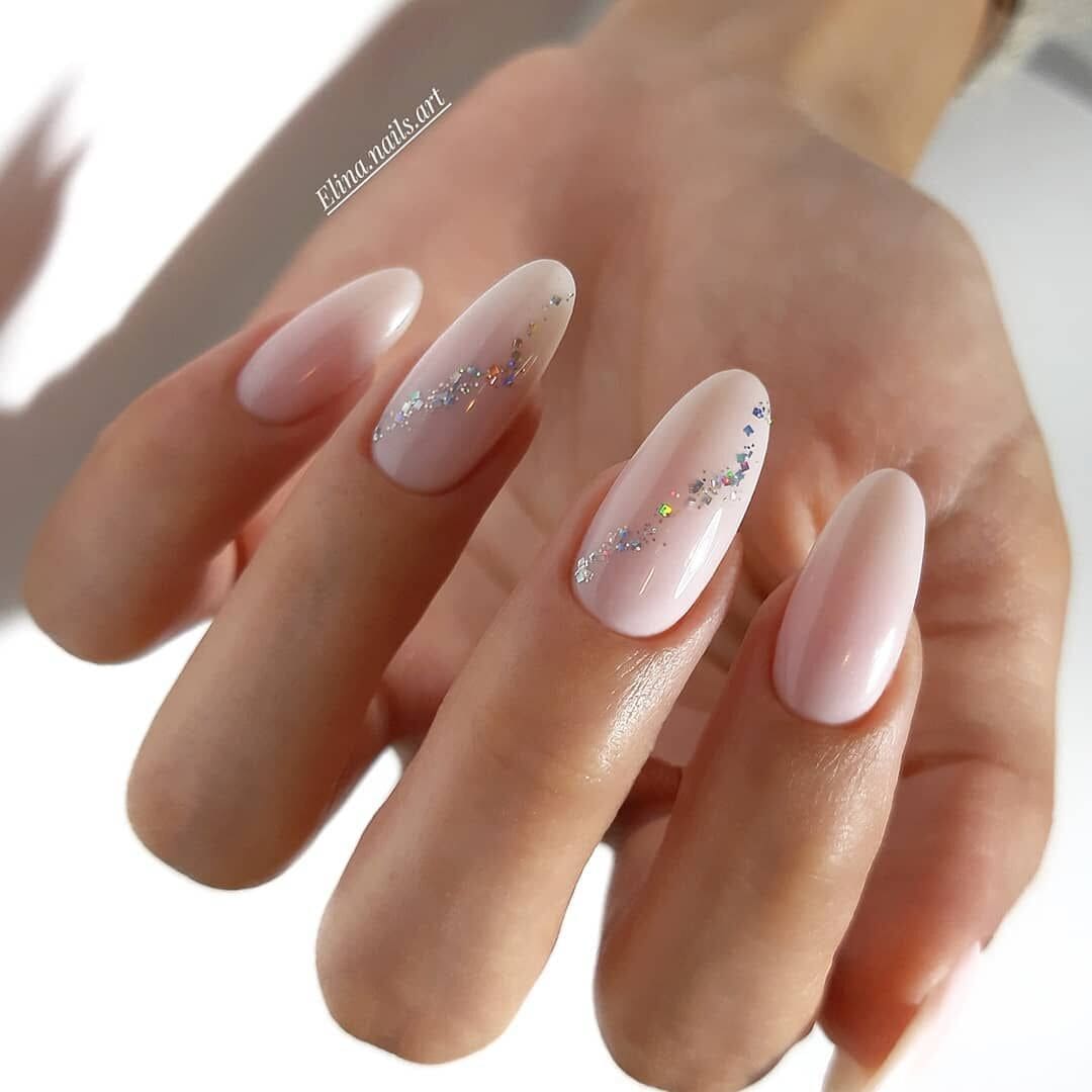 Для новичков и тех, кто делает маникюр в домашних условиях лучшим решением будет лак с глиттером. Зачастую он бесцветный, но в составе есть довольно много блесток разной формы и размера. Это могут быть кружочки, квадратики, звездочки и другие варианты.