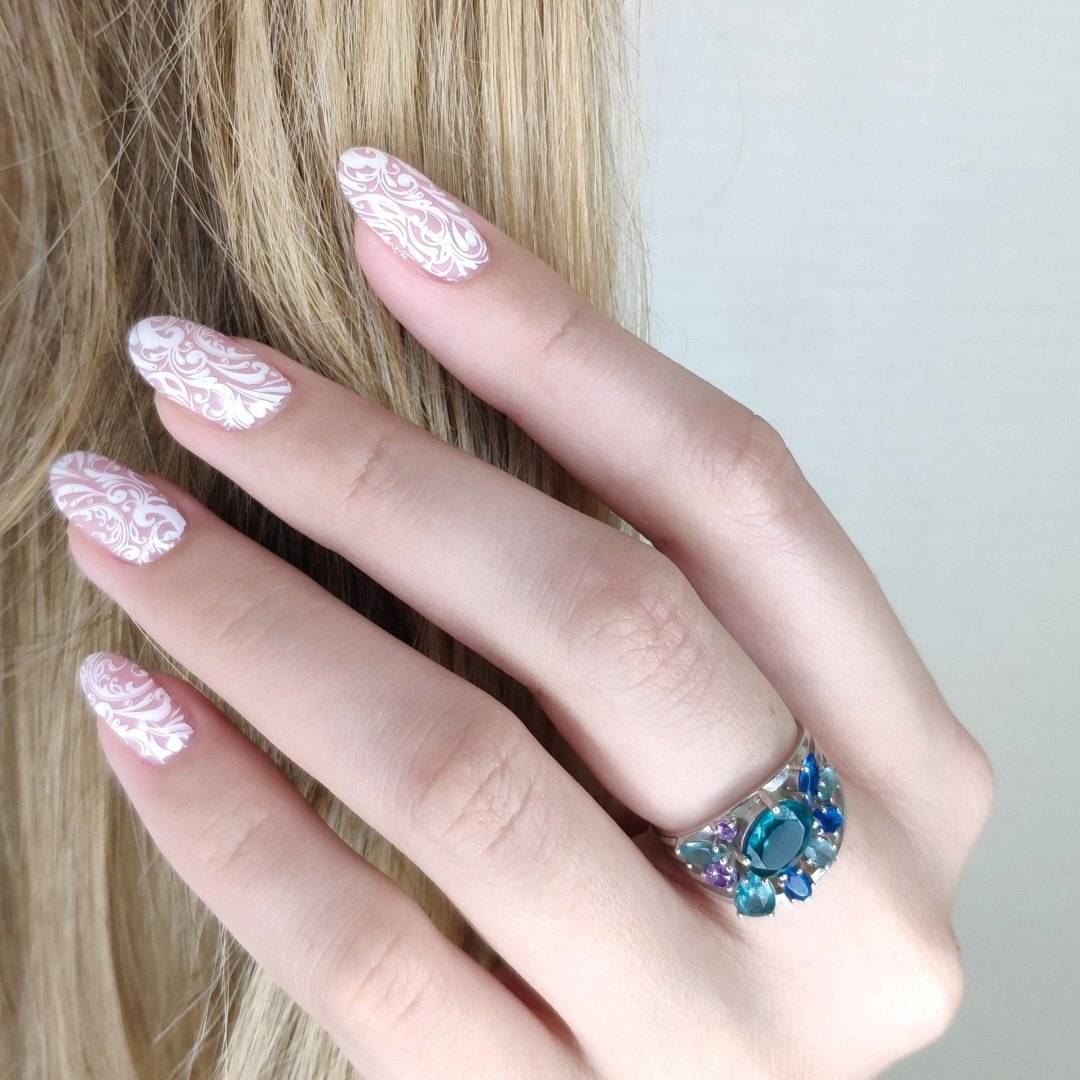 - используйте несколько монохроматических оттенков, которые дополняют друг друга с размещением таких деталей на одном-двух пальчиках;