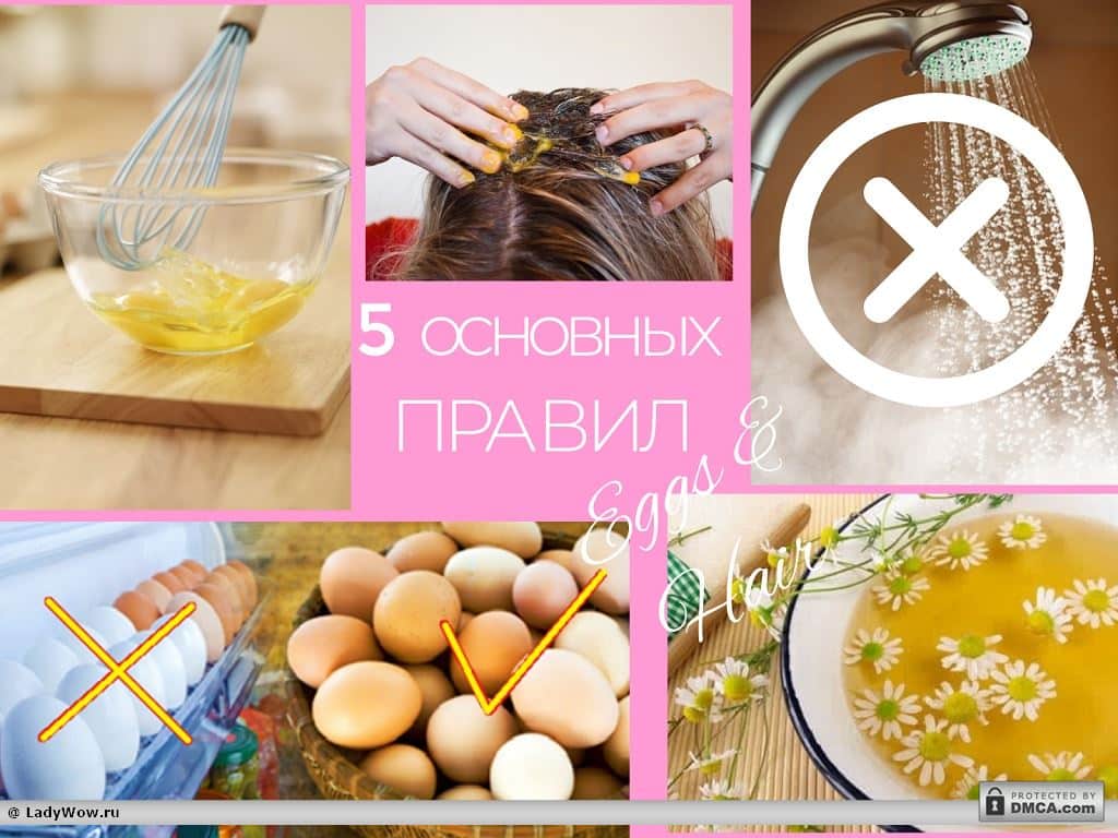 - Для промывки волос после масок используется только теплая вода. От горячей воды яйца могут свернуться и превратиться в хлопья;
