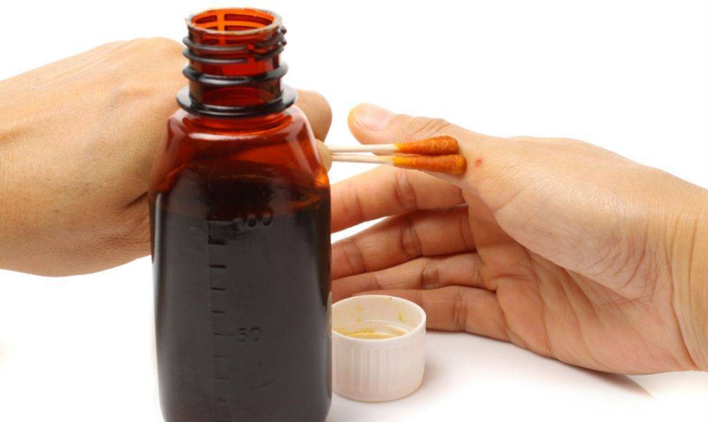 Кисточкой нанесите на ногтевую пластину обыкновенный медицинский йод.