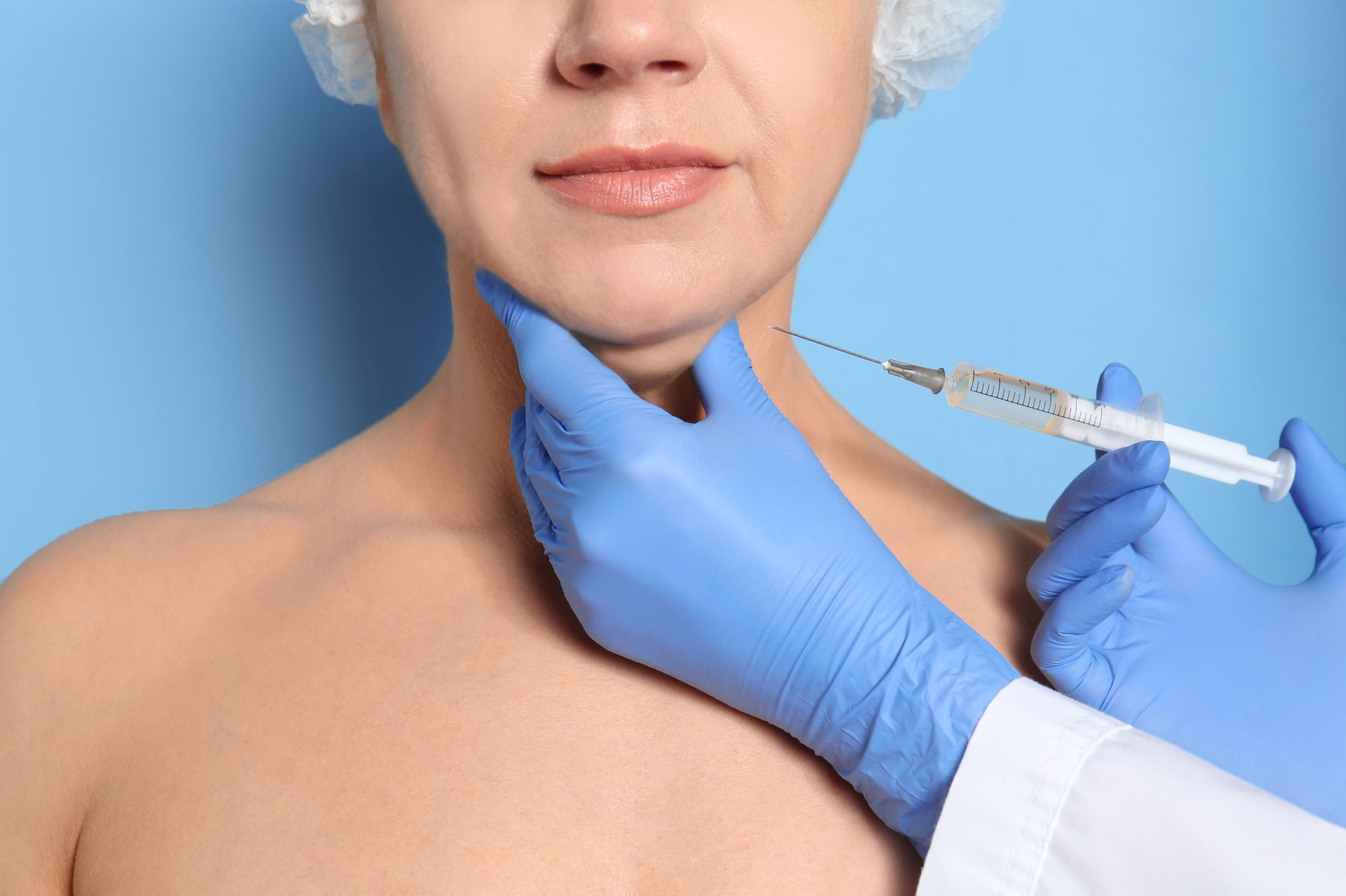 4. Инъекции липолитиков. При проведении данной процедуры пациенту в мягкие ткани вводят специальные препараты, которые вызывают контролируемый распад жиров. Результаты видны уже после первого сеанса. Для достижения выраженного эффекта необходимо пройти 4-8 процедур. Клетки жира, разрушенные инъекциями, не восстанавливаются. Но если причинный фактор сохраняется, то через некоторое время второй подбородок может образоваться снова. Процедуру должен проводить опытный косметолог, так как если ввести препарат на неправильную глубину, то возможен некроз тканей.
