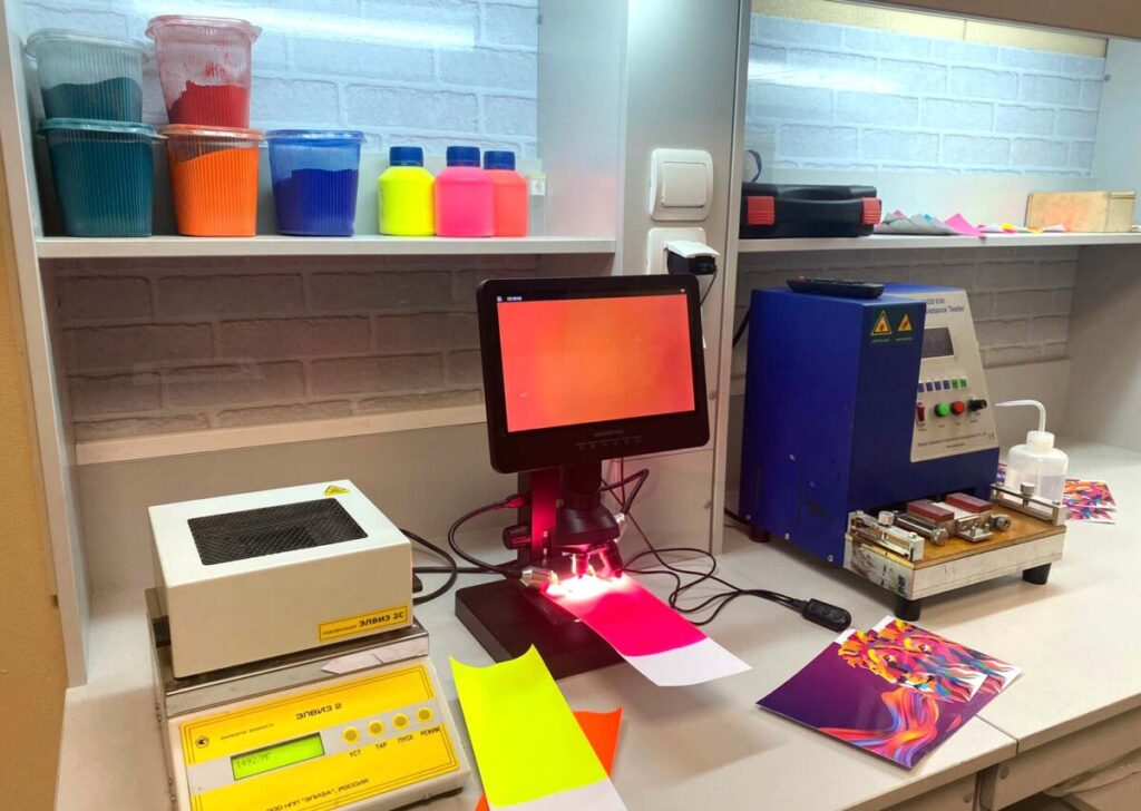 Колористическая лаборатория оказывает услуги по подбору цвета любой сложности, в том числе металлизированной краски и для печати по невпитывающим основам.