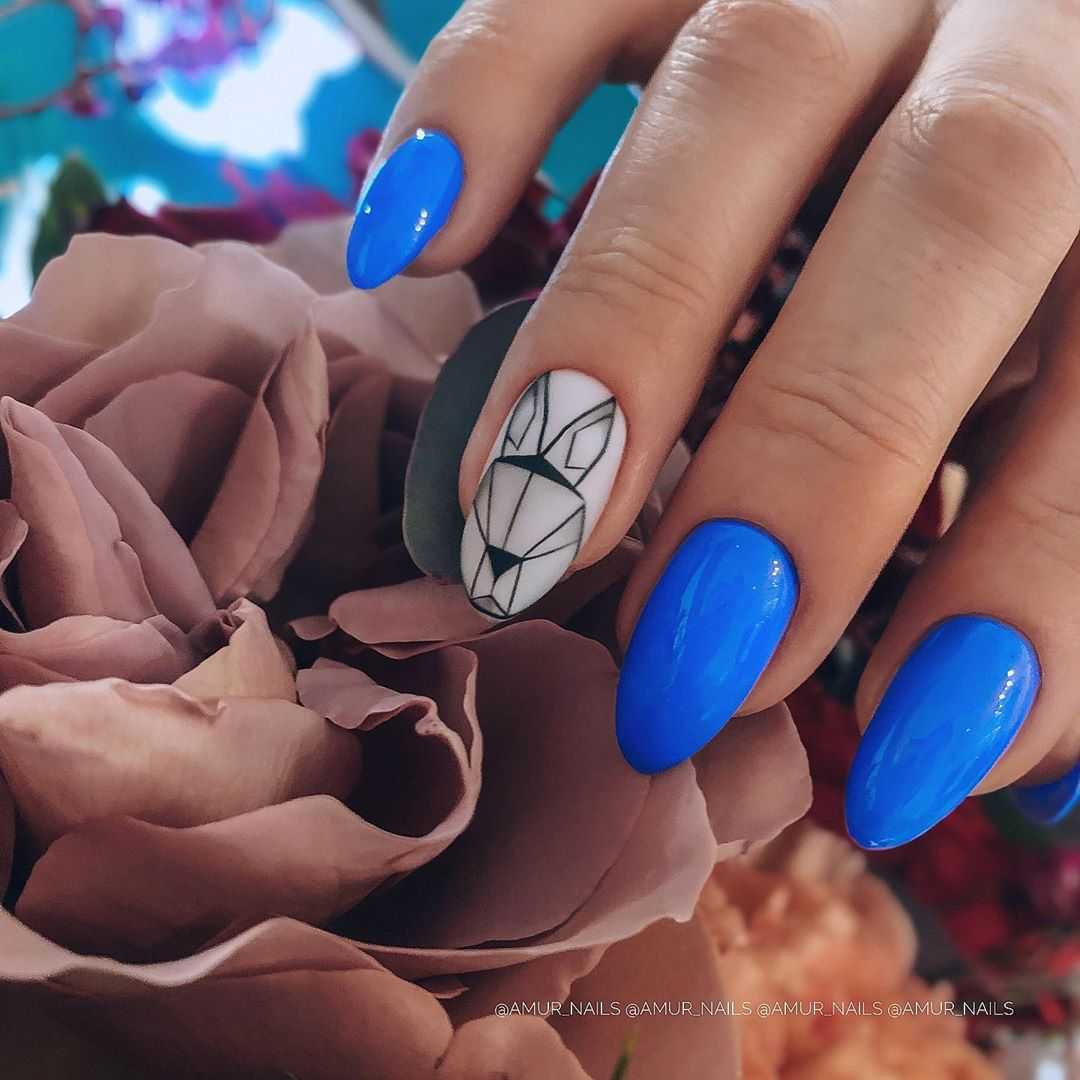 Хорош и лаконичный бело-синий маникюр с ручной росписью милых незабудок или элегантных калл синего цвета.