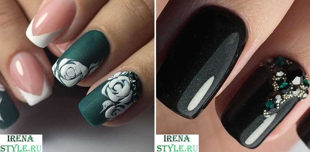 - Черный. Это оригинальное сочетание создаст контрастный маникюр. Его можно дополнить стразами, полосками и другими орнаментами.