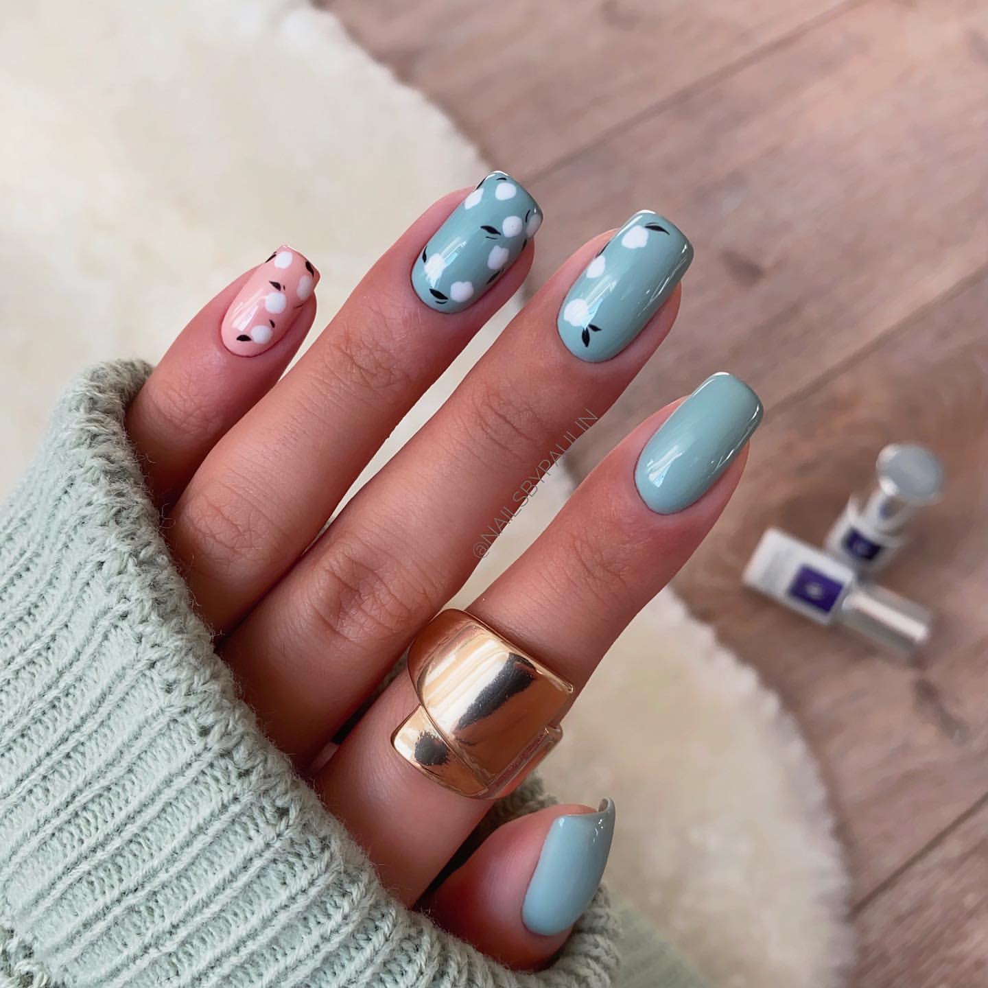 Еще одна интересная идея для мятного маникюра — это добавить нежные узоры или рисунки на ногти. Ромбы, цветочные мотивы или абстрактные элементы отлично дополнят этот цвет и сделают маникюр более уникальным.