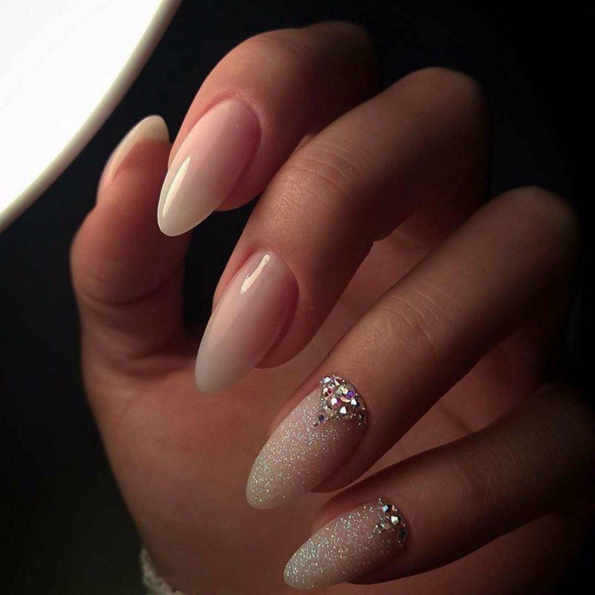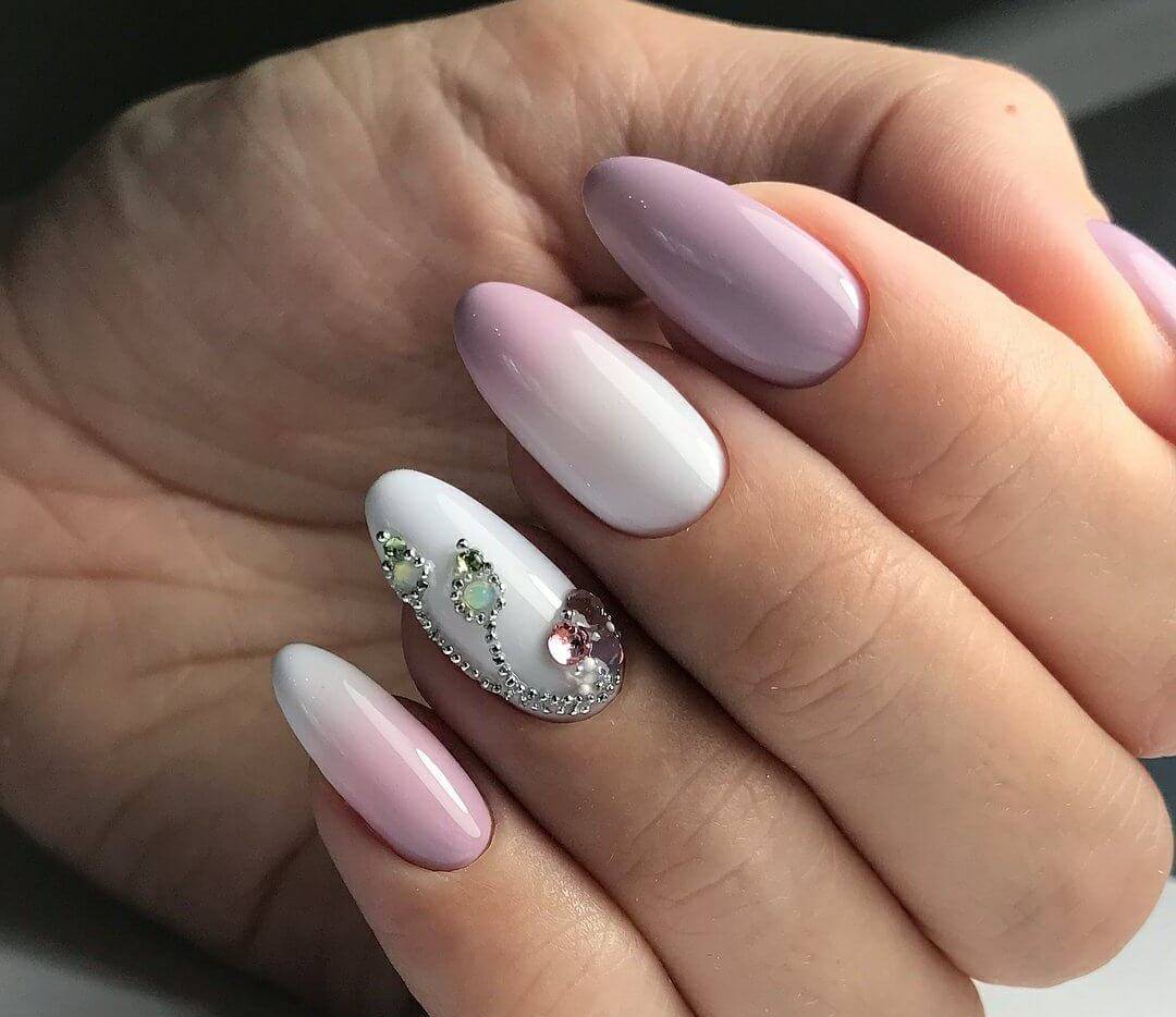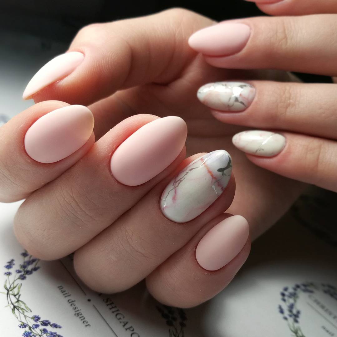 Новинкой данного сезона, которая стремительно набирает популярности, стала овальная или миндалевидная форма ногтя. Данная форма смотрится очень женственно и нежно, особенно если в маникюре использовать легкие пастельные цвета. Для маникюра на овальную форму ногтя мастера нейл-дизайна предлагают следующие идеи: