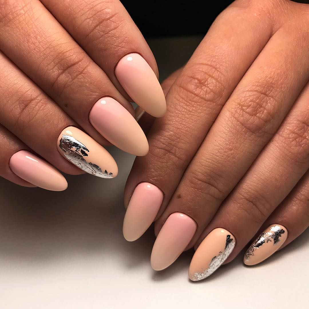 Решили выбрать нежный маникюр, но при этом у вас желание сделать его необычным? Многие нейл-мастера предложат вам разнообразить нежный маникюр разноцветными камифубуками на ногтях. Эти красивые конфетти могут украсить как все ваши пальчики, так и сделать акцент на одном ноготке. Конфетти могут быть как одного цвета с основным лаком, так и отличаться. В этом году очень модно использовать фольгу в нейл-дизайне. Экспериментируйте с разной фольгой в маникюре. На одной руке на пальчиках у вас может быть блестящий вариант фольги, в то время как другую руку вы украсите цветным вариантом. При применении такой техники у вас будет модный нежный маникюр, подходящий под любой образ.