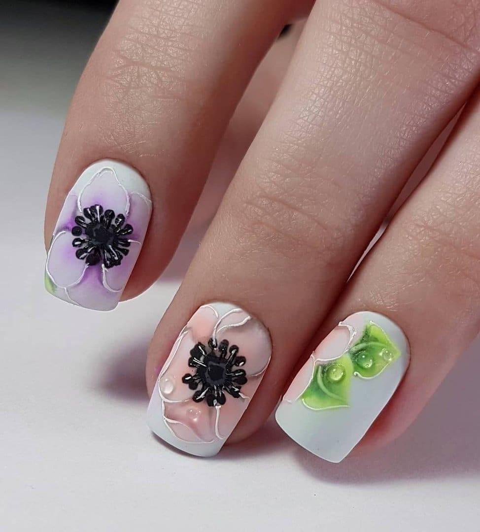 Модные тенденции сезона, заданные мастерами ногтевого направления, превосходно подходят для любого мероприятия. Под категорию цветущих растений попадают объемные розы или нежные, едва заметные бутоны.