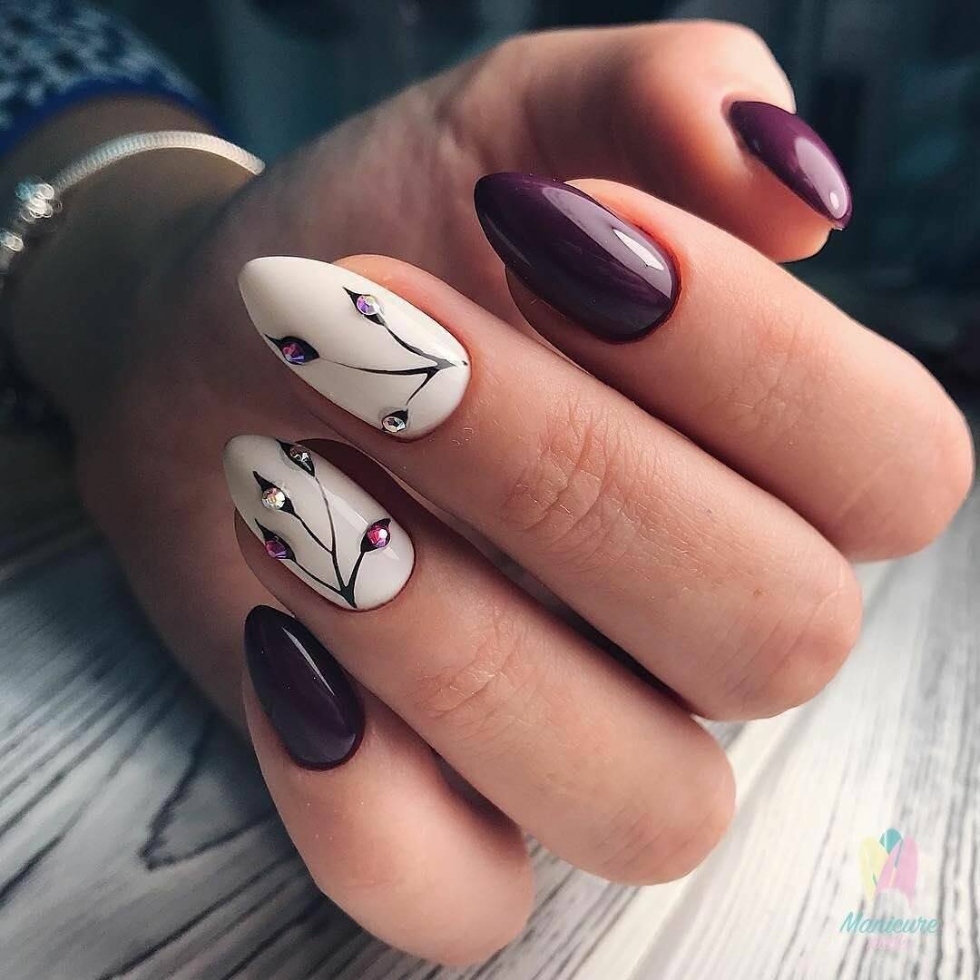 Еще один тренд моды – это кристаллы. Когда ногти дополняют кристаллами, смотрится очень интересно. И тут главное не переборщить. Достаточно украсить один, два ногтя — не больше.